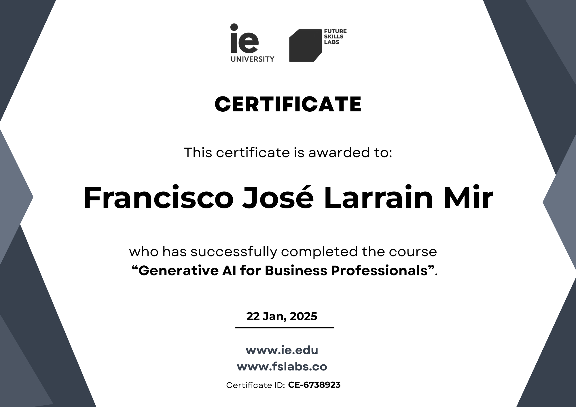 Ie business schoolJan 2025 - View certificate