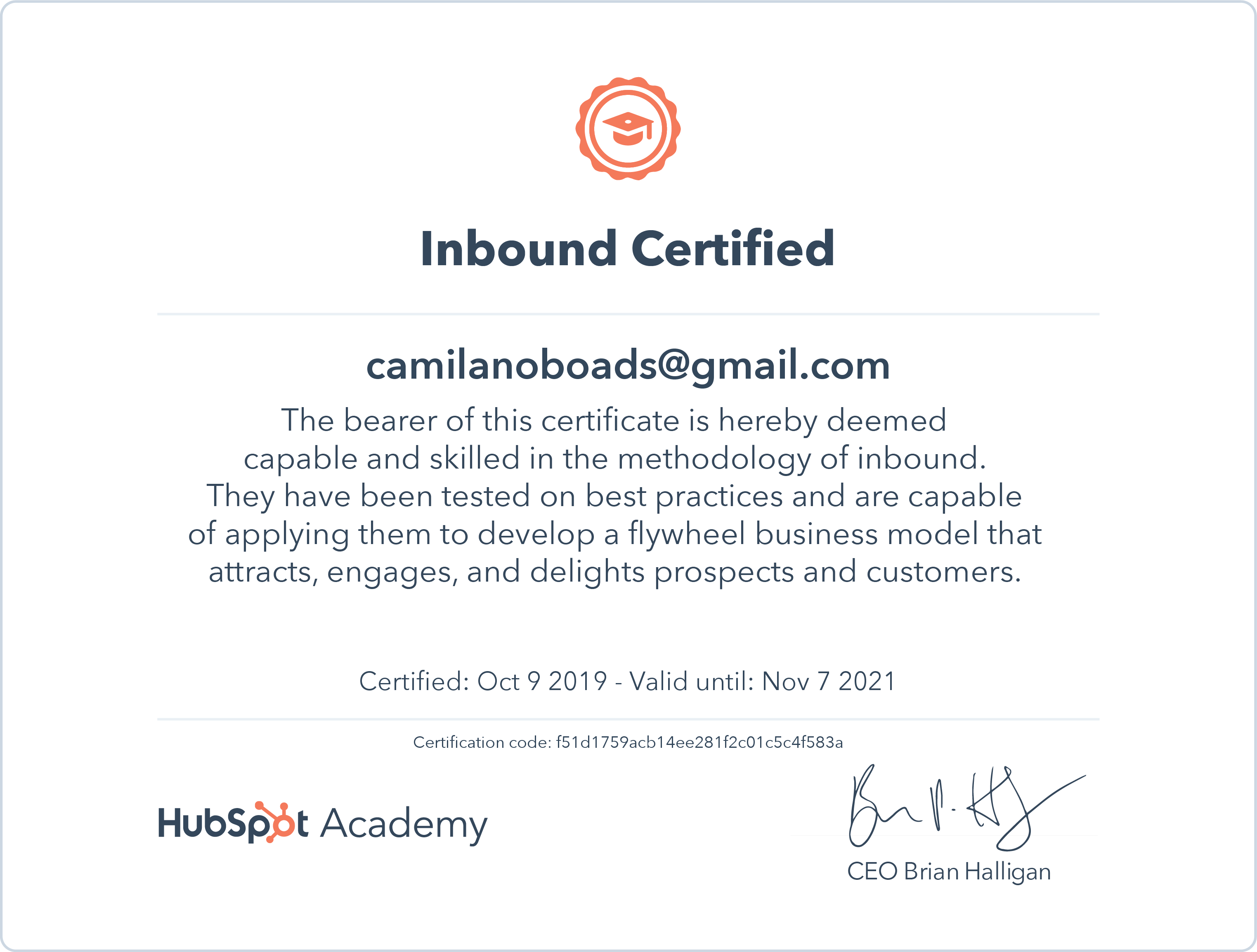 Hubspot academyOct 2019 - View certificate