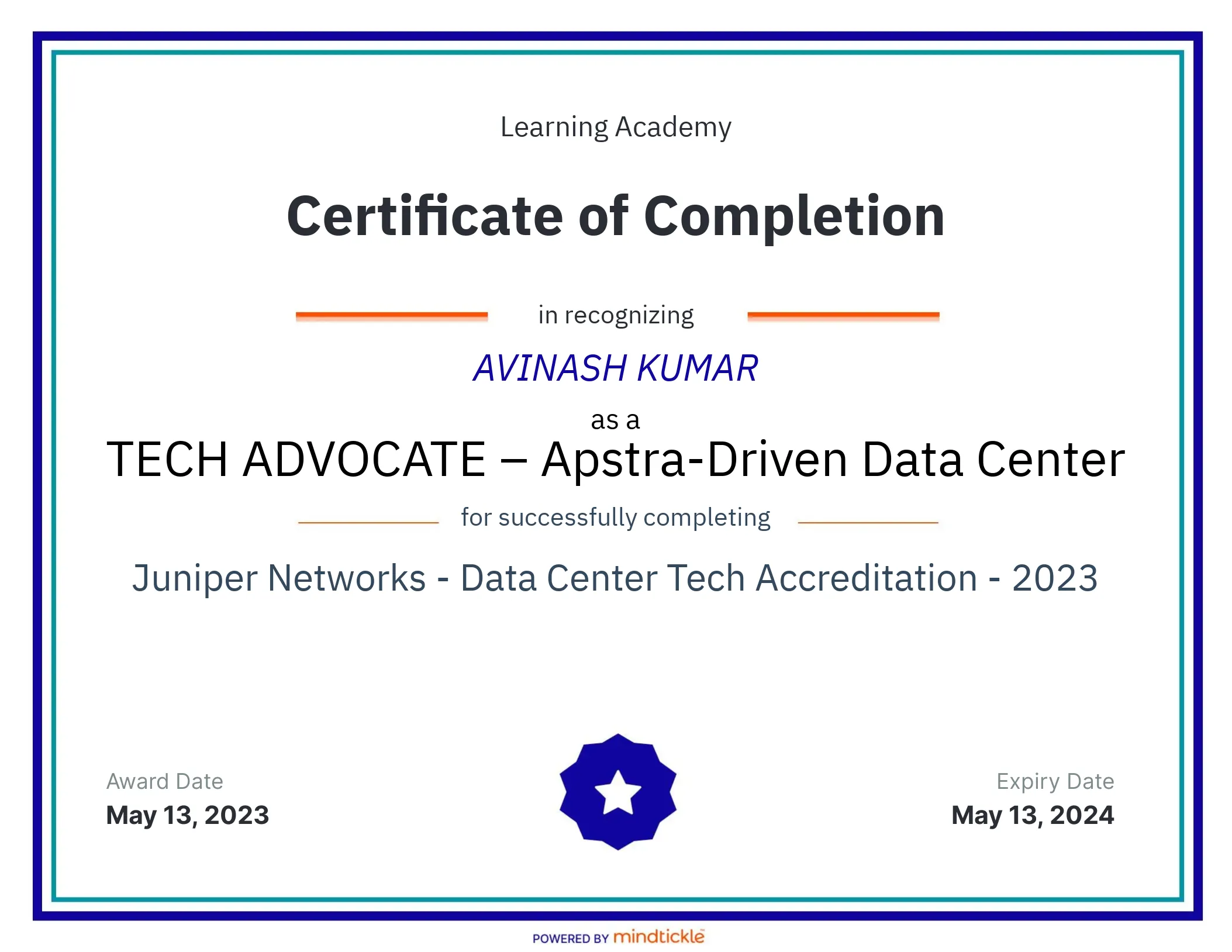 Juniper NetworksAug 2023 - View certificate