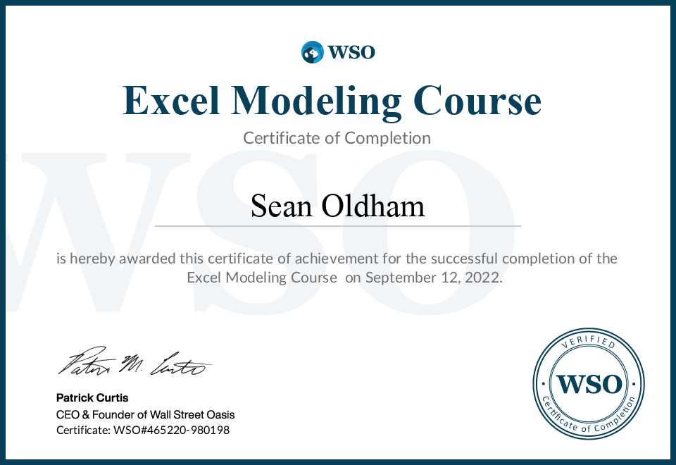 Excel Modeling Course