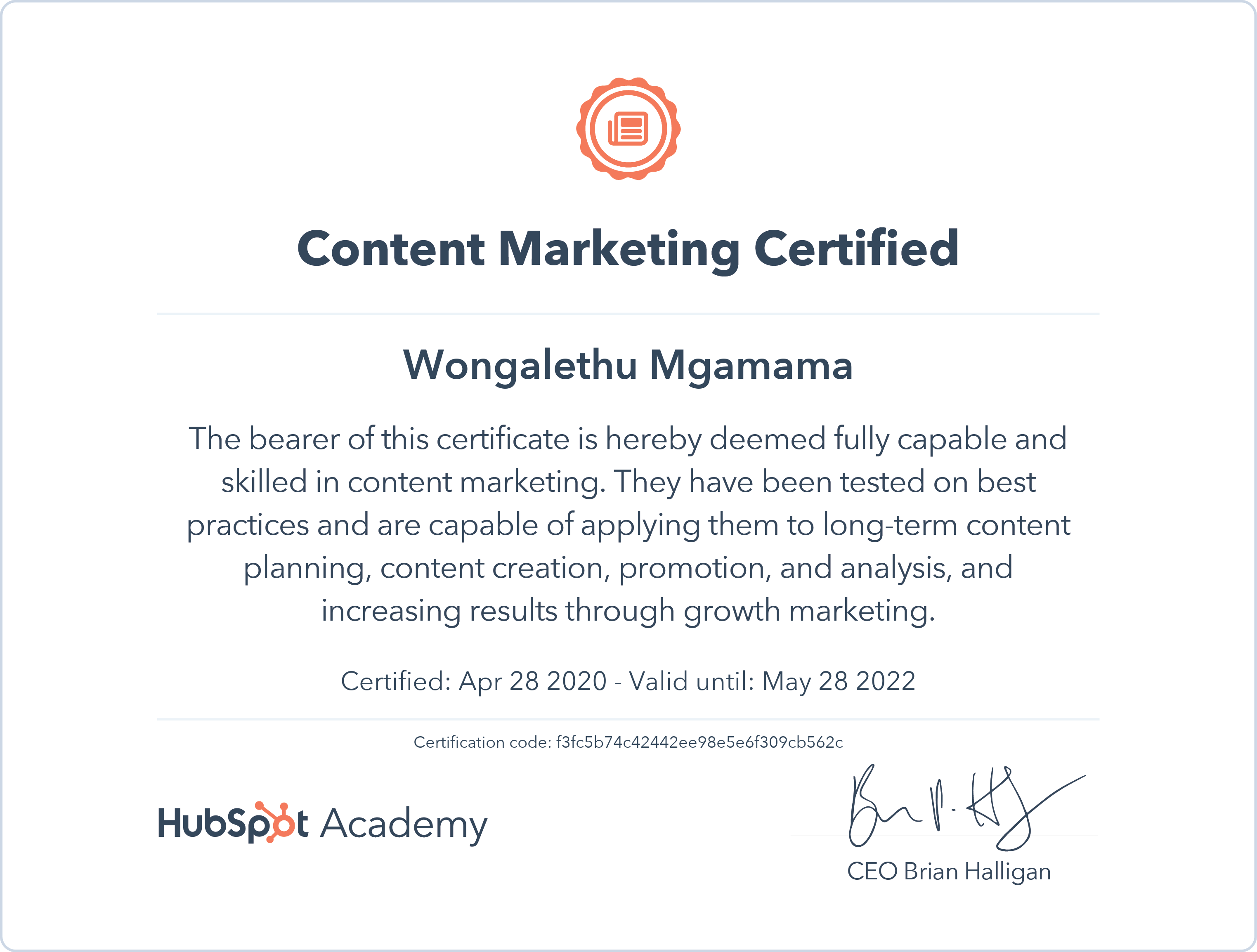 HubSpotApr 2020 - View certificate