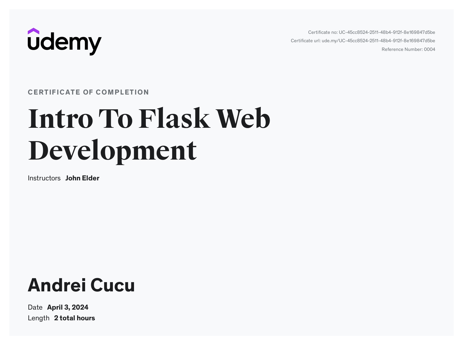 UdemyApr 2024 - View certificate