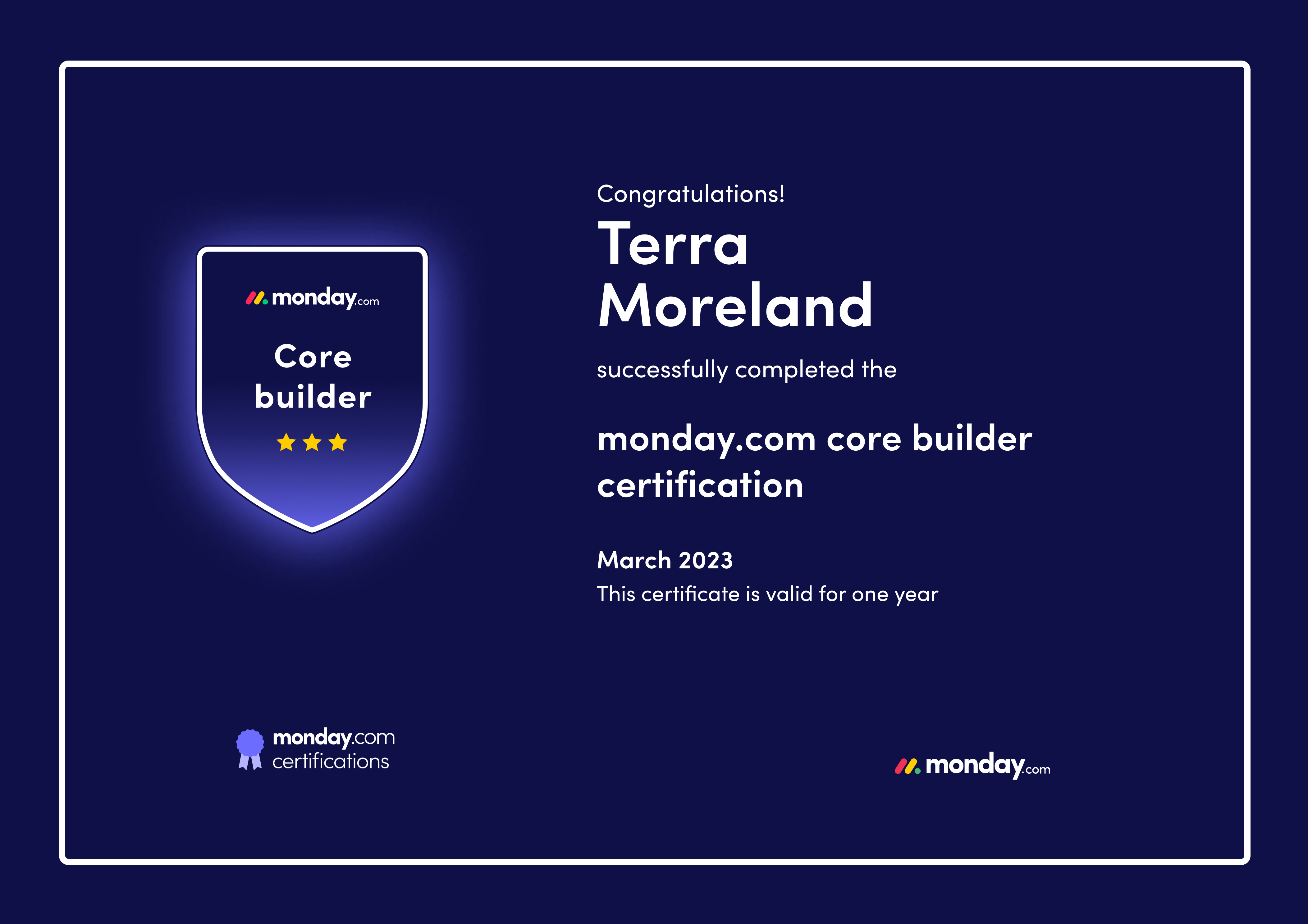 Monday.com core builder certification