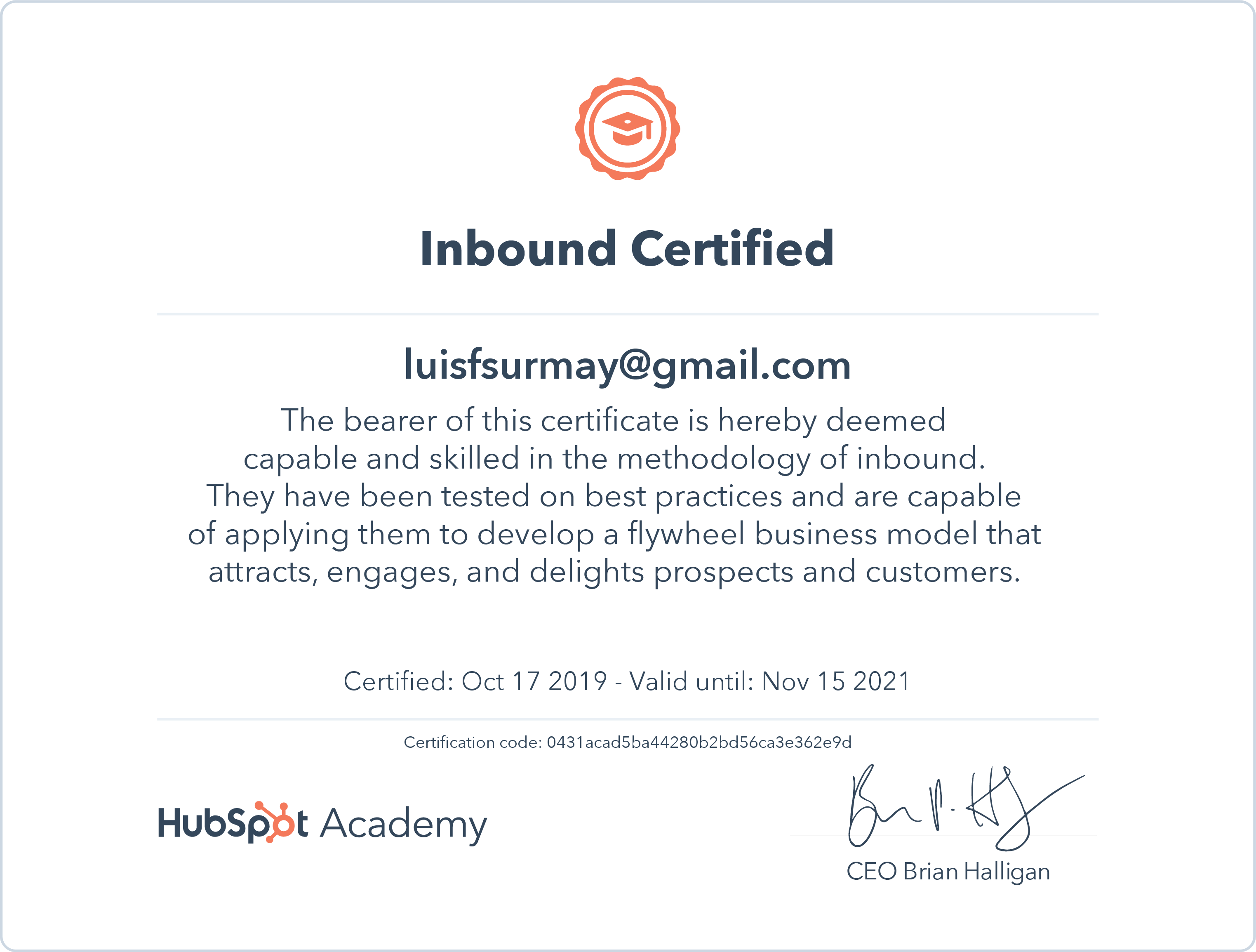 HubSpot AcademyOct 2019 - View certificate