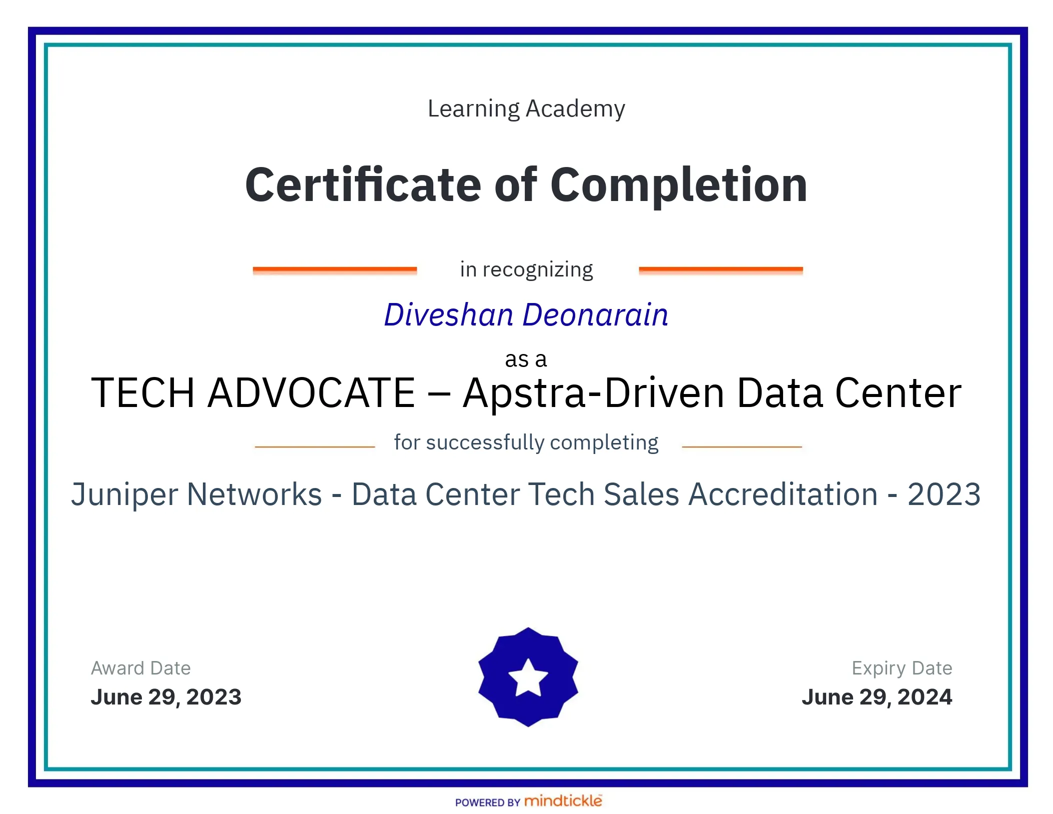 Juniper NetworksJun 2023 - View certificate