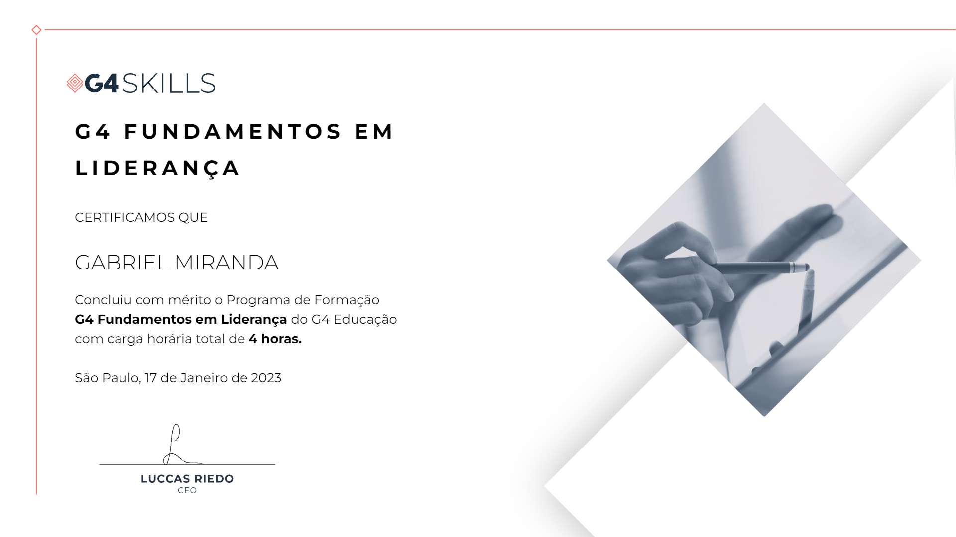 Certificado G4 Fundamentos em Liderança