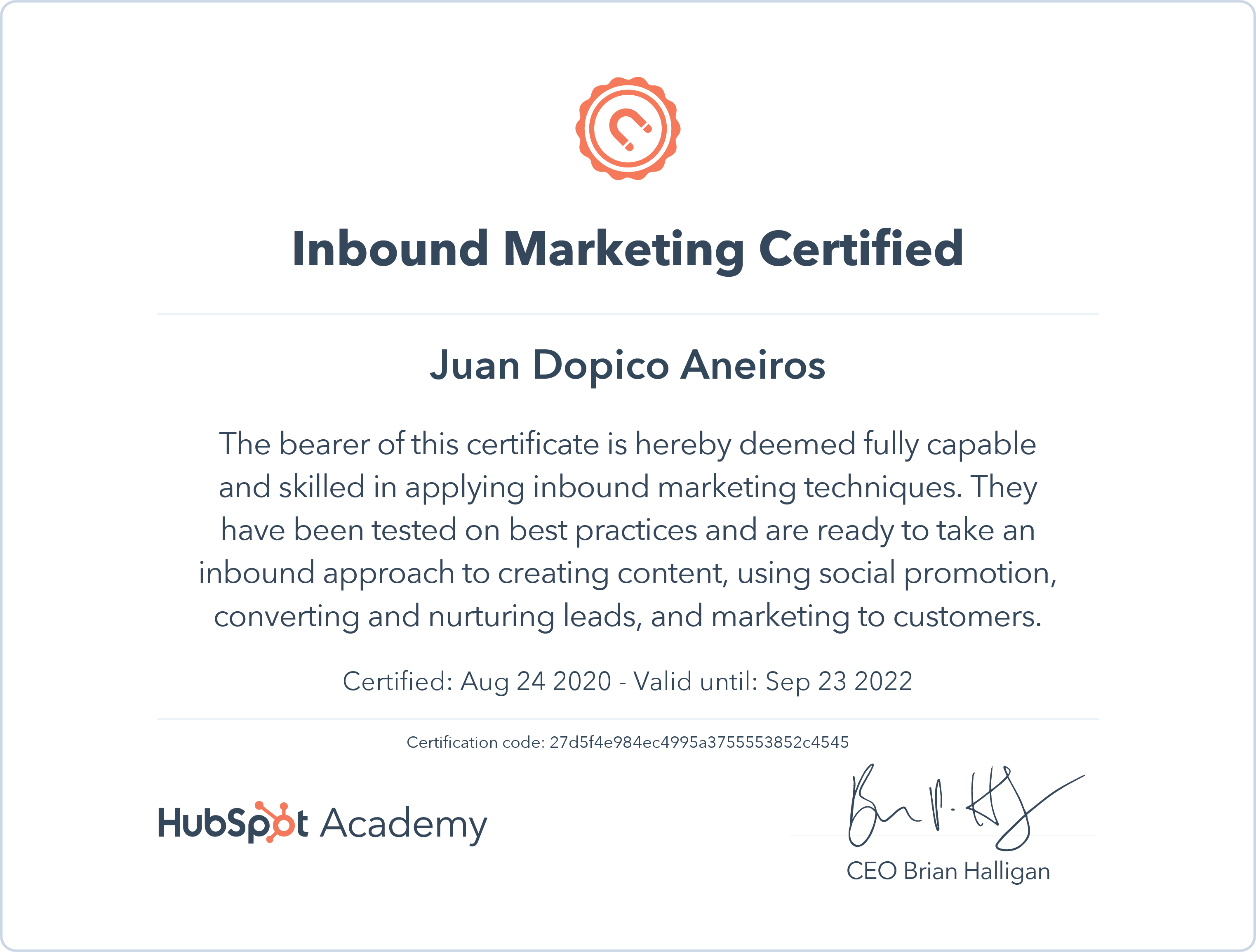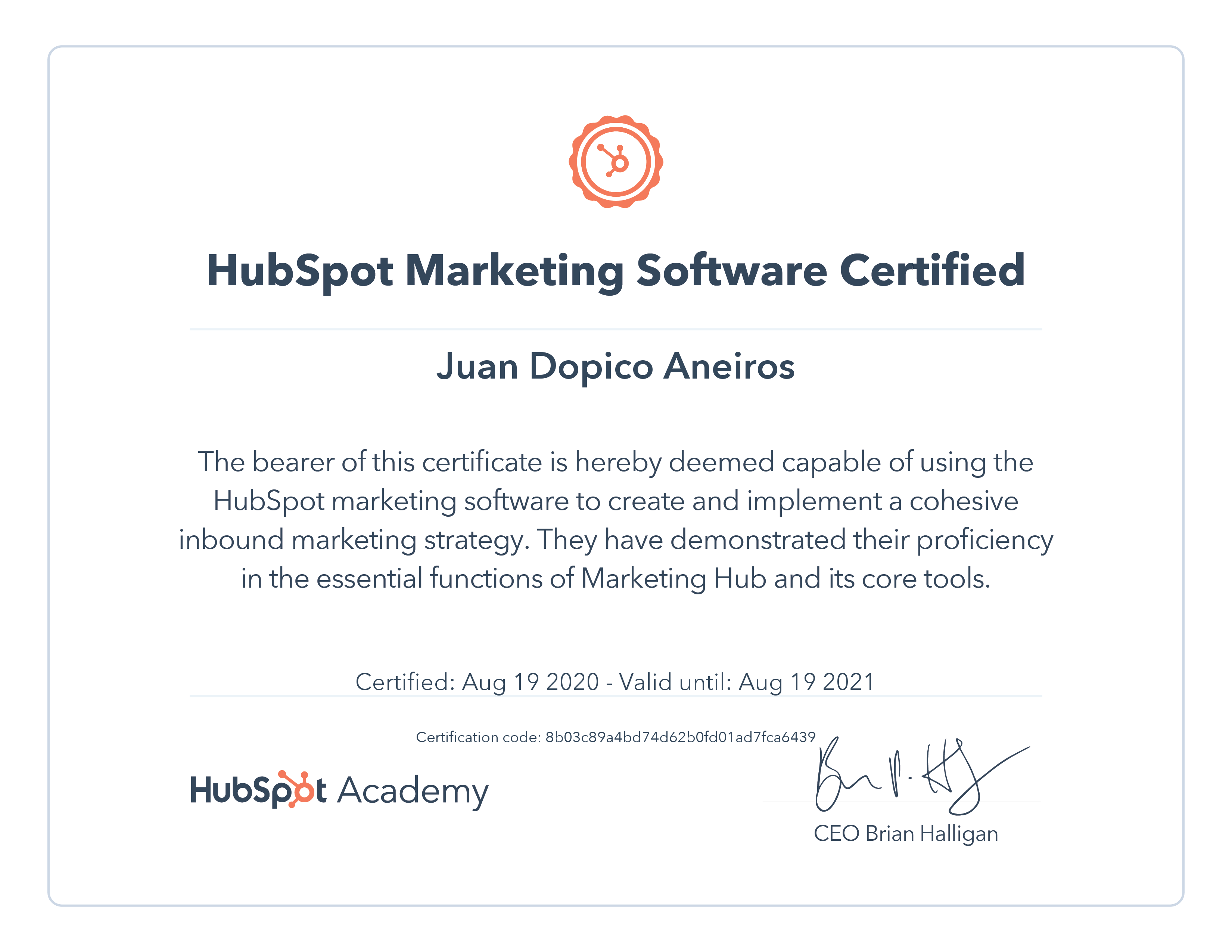 HubSpot AcademyAug 2020 - View certificate