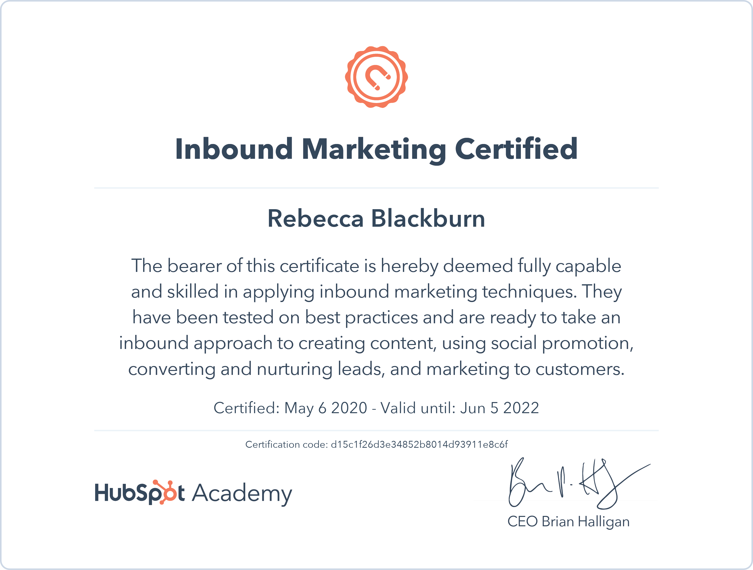 HubSpot Academy - View certificate