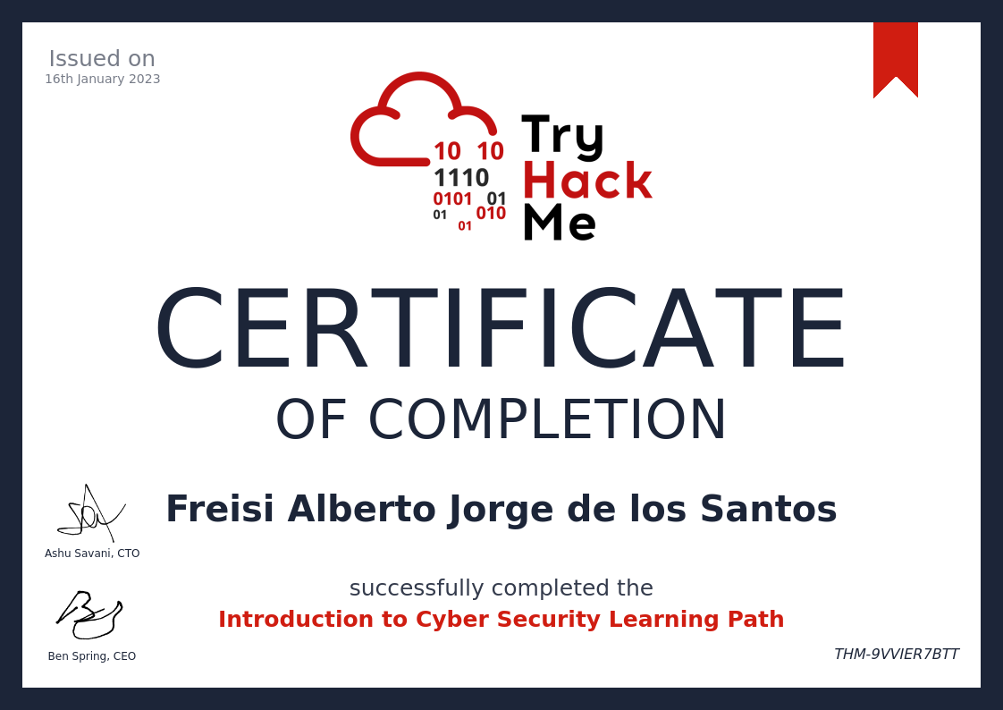 TryHackMeJan 2023 - View certificate