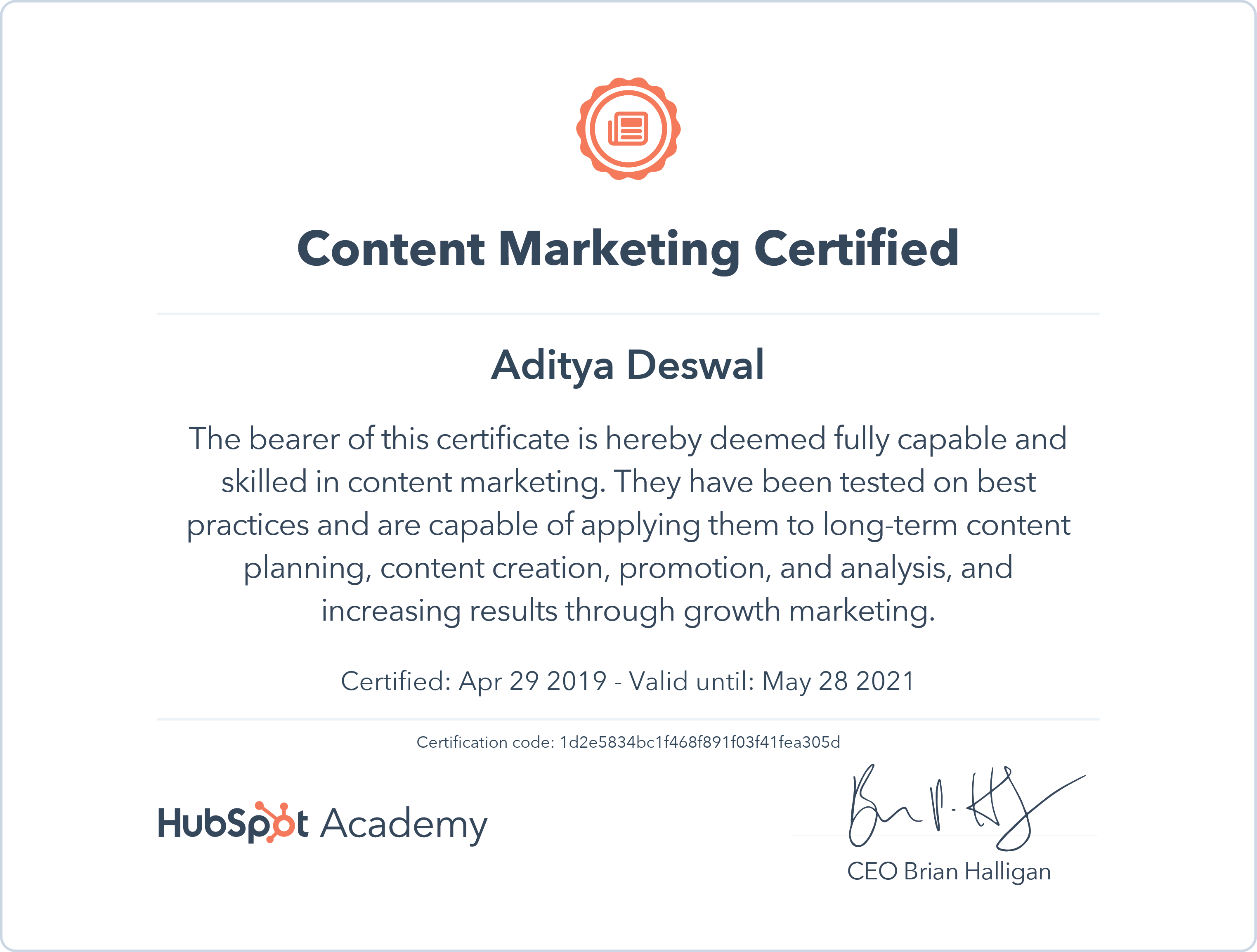 Hubspot Academy Content Marketing Certified