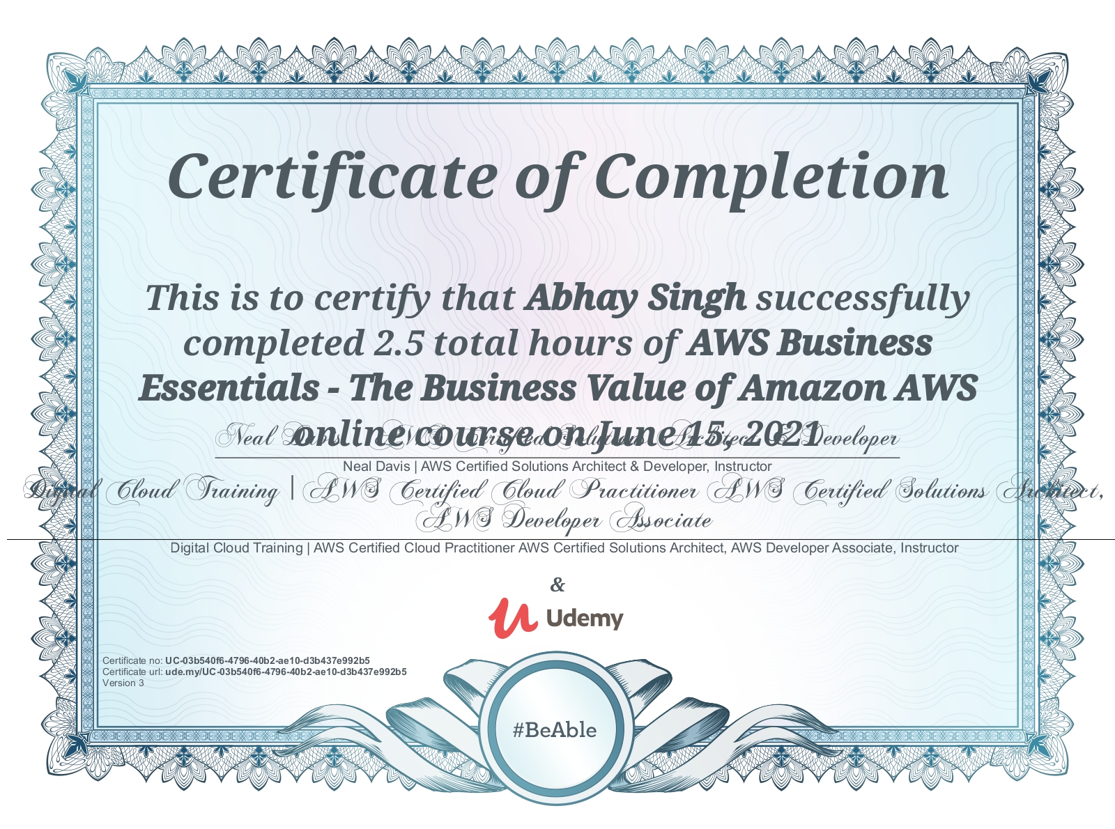 Amazon Web Services (AWS)Jul 2021 - View certificate