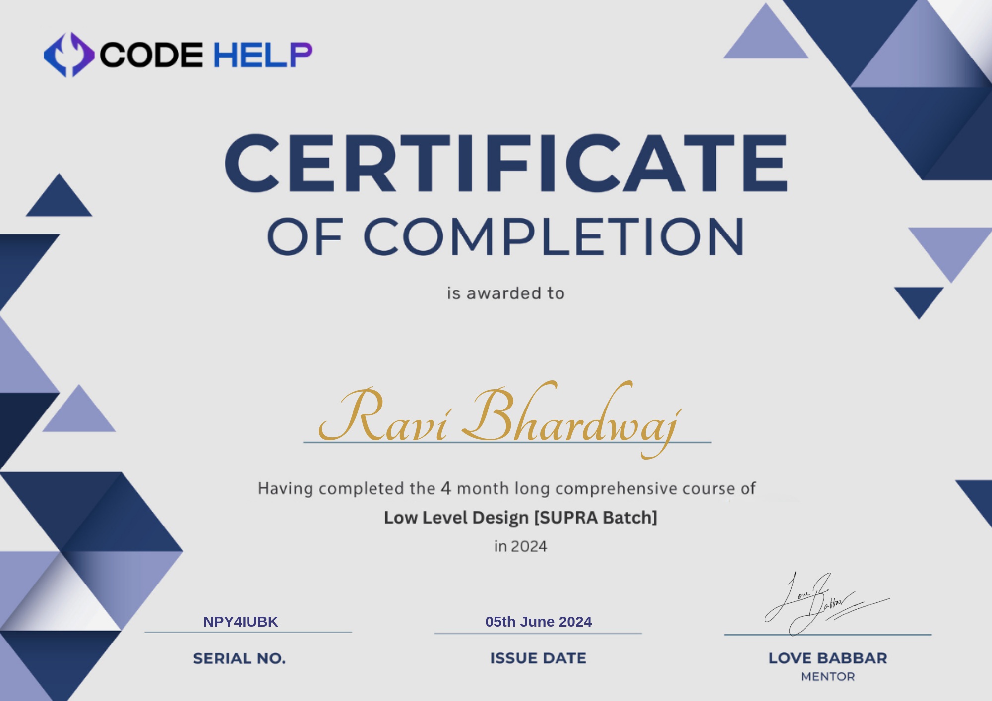 Code HelpJun 2024 - View certificate