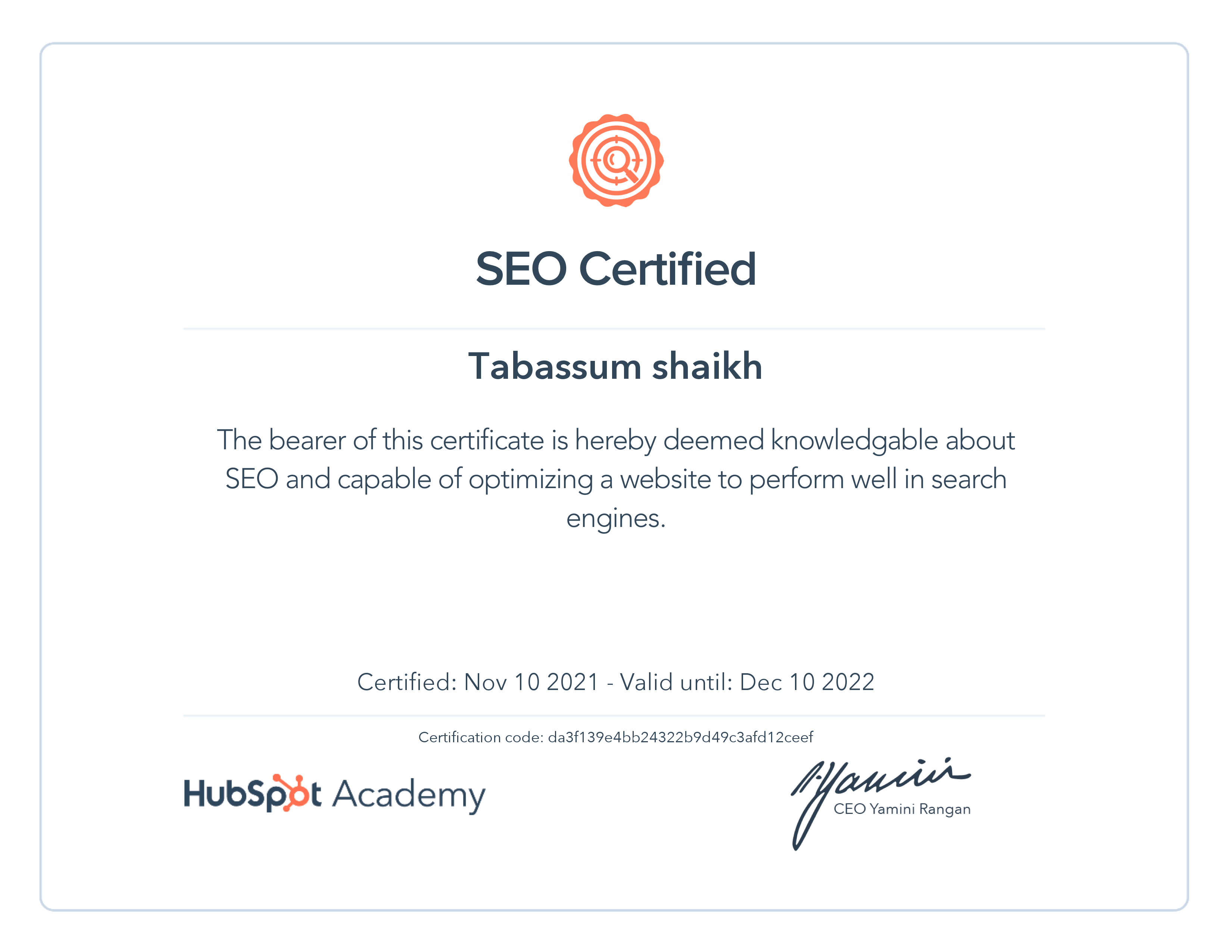 HubSpot AcademyNov 2021 - View certificate