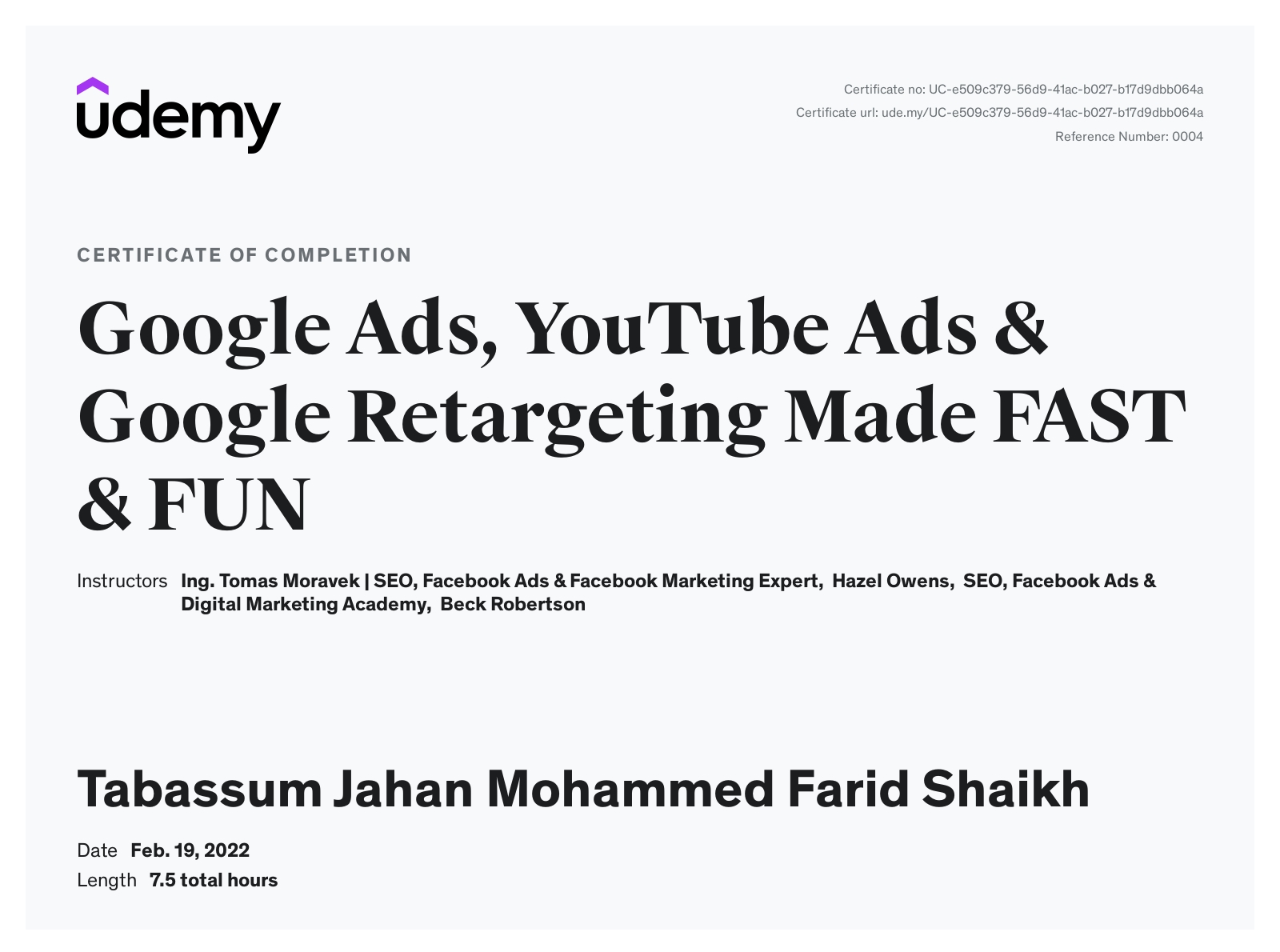 Udemy - View certificate