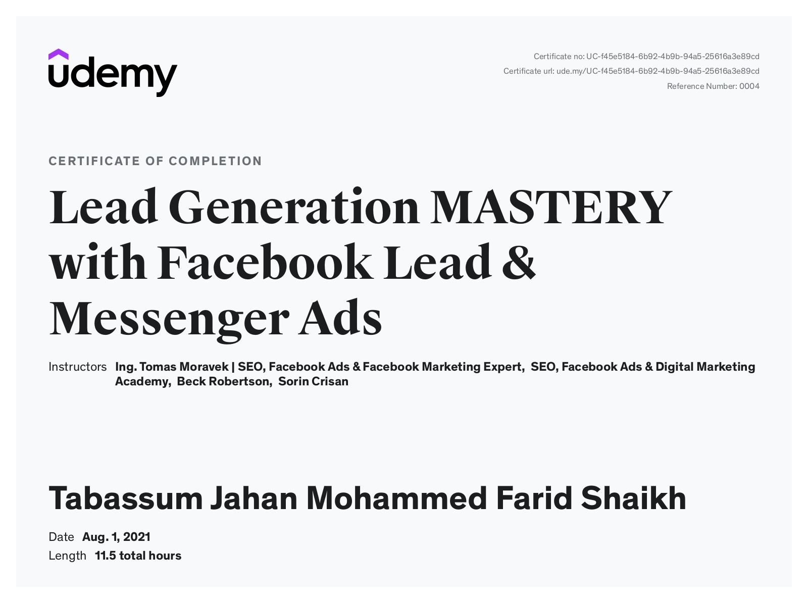 UdemyAug 2021 - View certificate