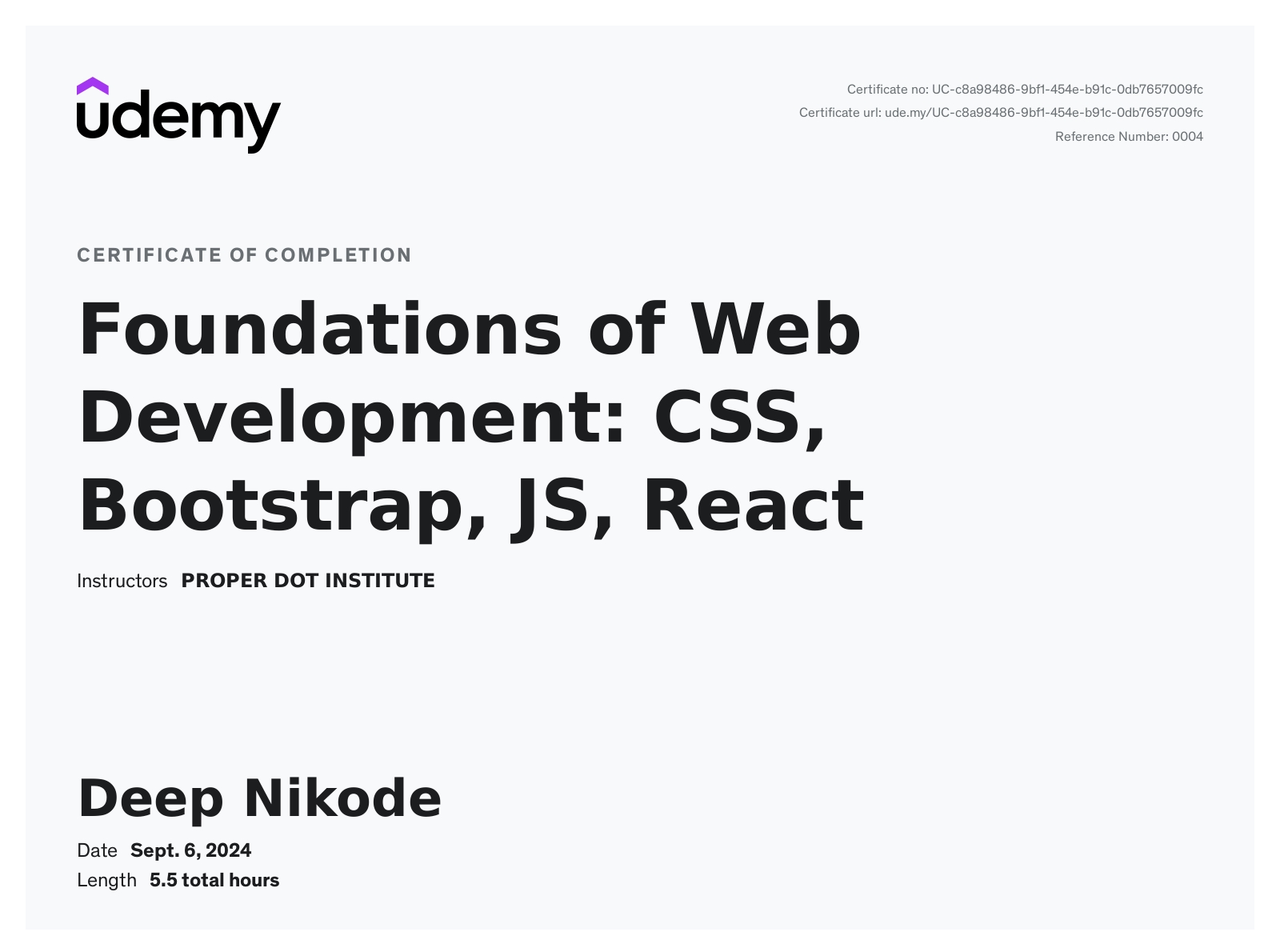 Proper dot instituteSept 2024 - View certificate