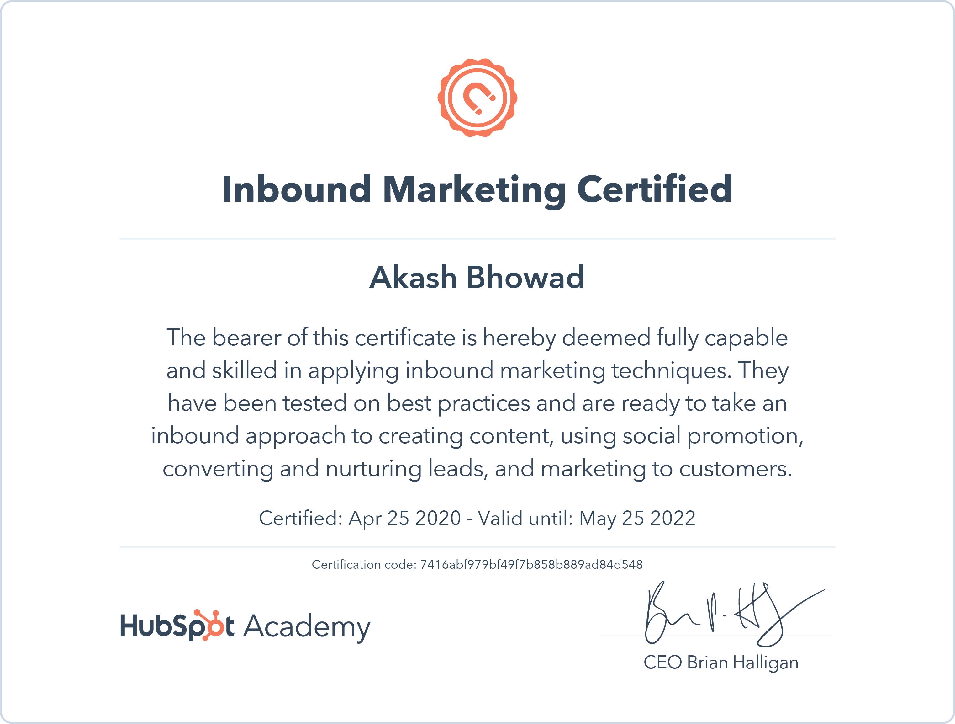 HubSpotMay 2020 - View certificate