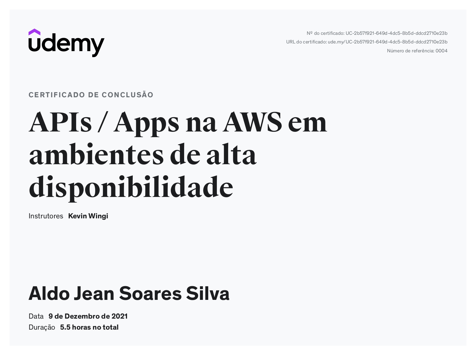 APIs / Apps na AWS em ambientes de alta disponibilidade. 6 h.
