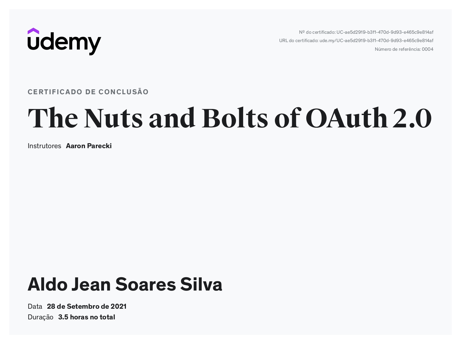The Nuts and Bolts of OAuth 2.0. 3.5h.