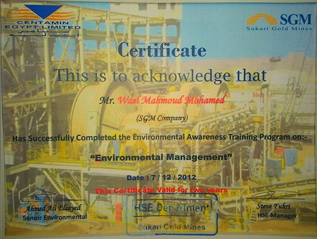 Certificate the Environmental Awareness Training Program one "Environmental Management.