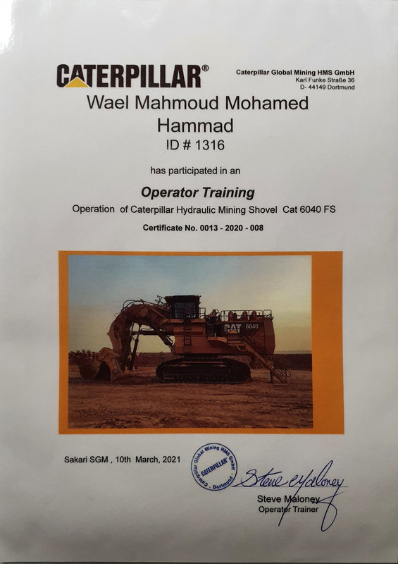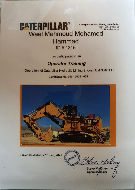 Nov 2012 - Nov 20232021 /6040 Caterpillar Excavator Training by Steve Maloney2015 /2019 Training and working on the shovel CAT 60402013/2015 Got a job in gold mine continued Centamin Egypt and working on Excavators CAT 390 and CAT 6018 and O & K 120RH 2012/2013 Got a job Excavator operator Komatsu 240 and CAT 229 C rock breaker 2011/2012 Got a job Excavator operator CAT 225 C and CAT 235 C rock breaker 2010/2011 Training and got a license to run a formal Excavator + Certificate formal experience certified. Show less