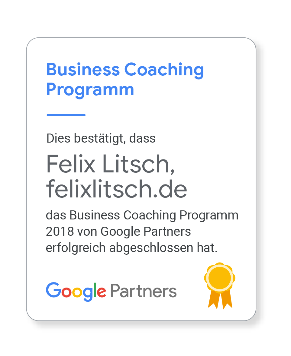 - Awarded to Felix LitschGoogle Partner Google Inc. Jul 2015 https://www.google.com/partners/agency?id=4112731598