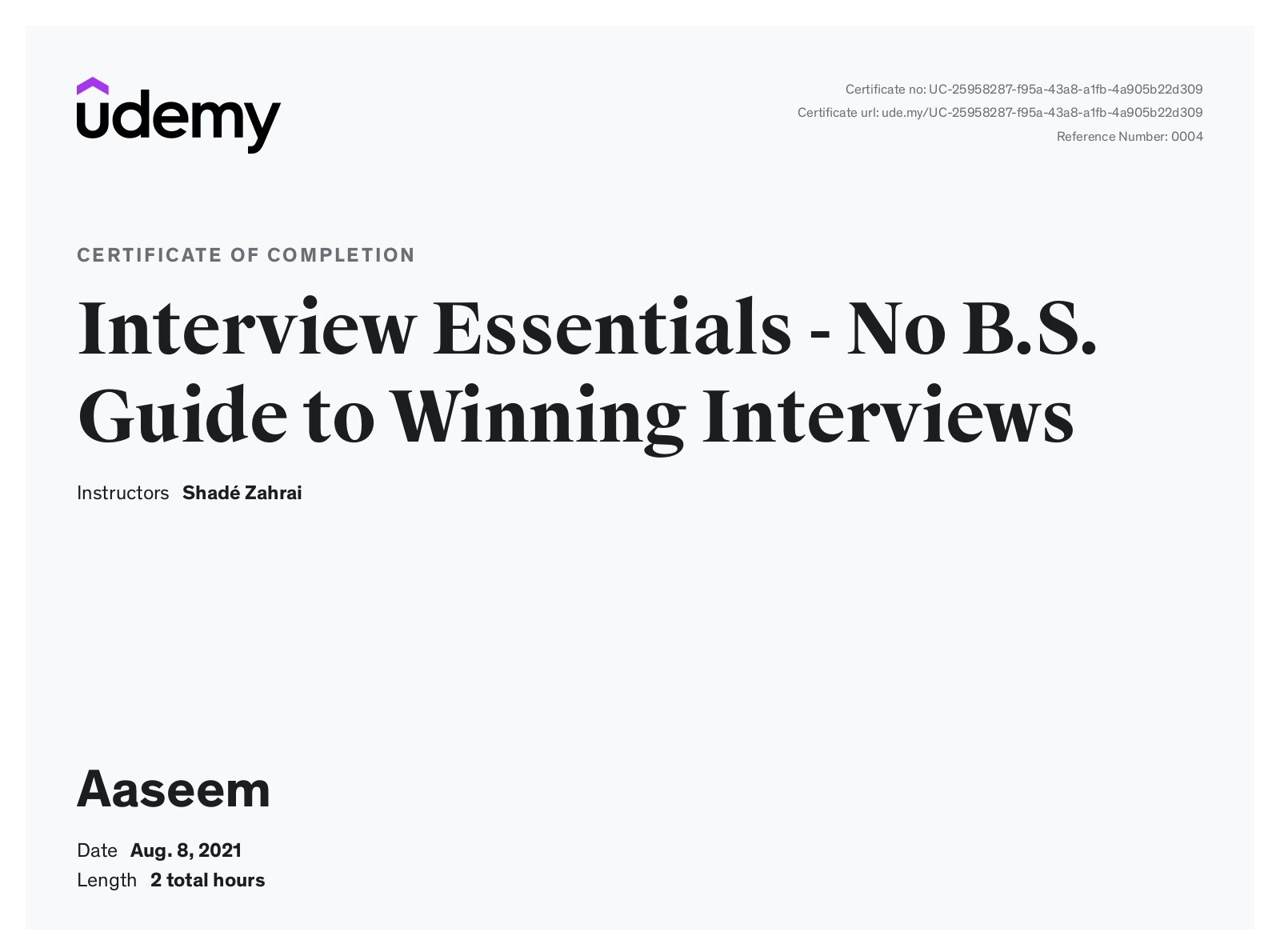 UdemyAug 2021 - View certificate
