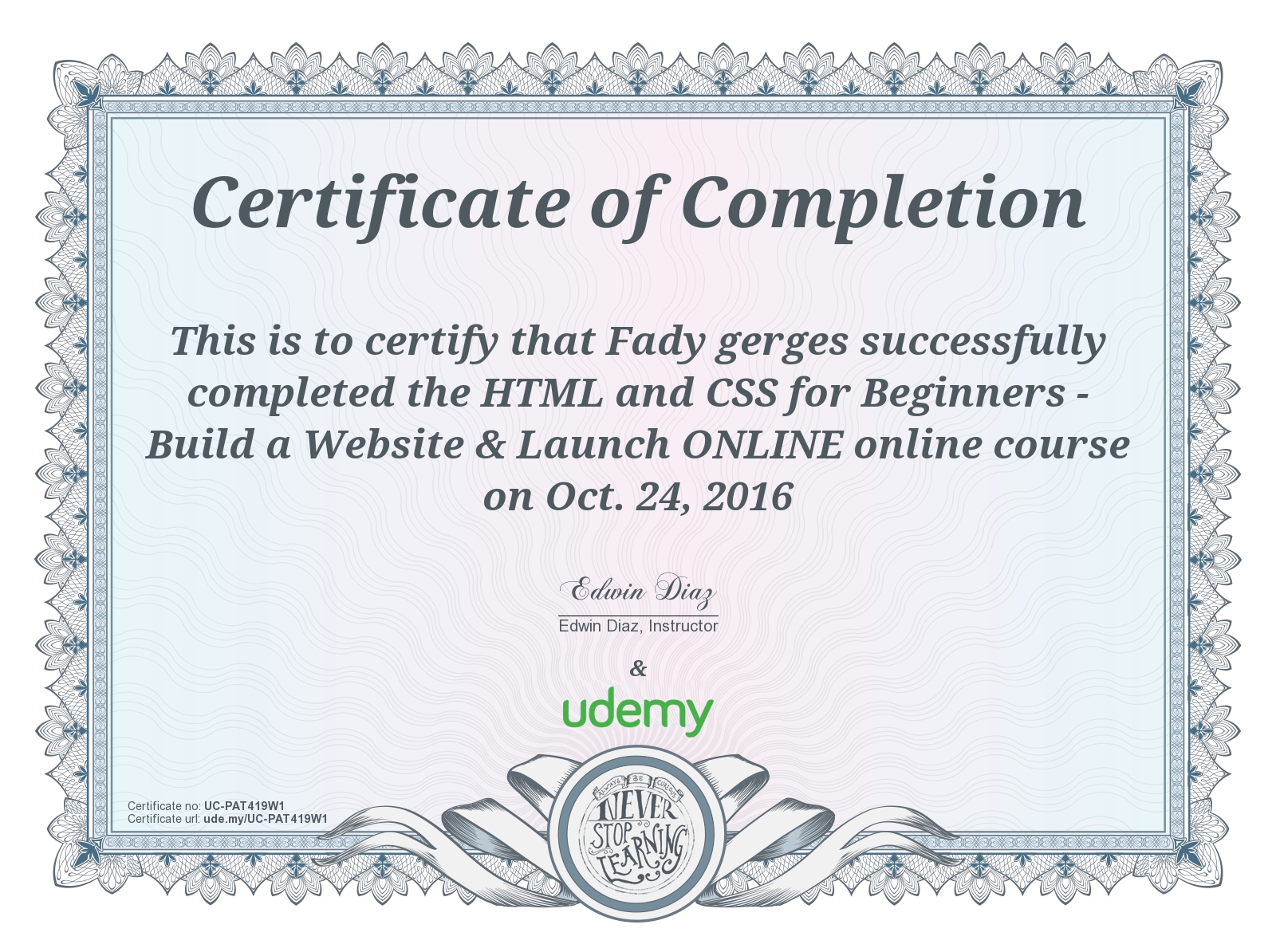 Udemy - View certificate