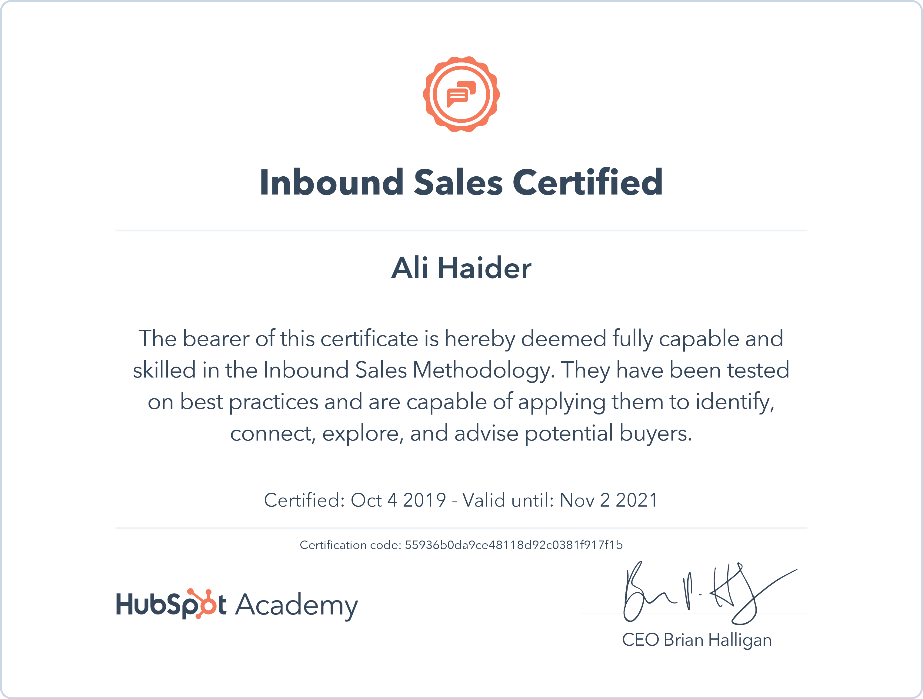 HubSpot AcademyOct 2019 - View certificate