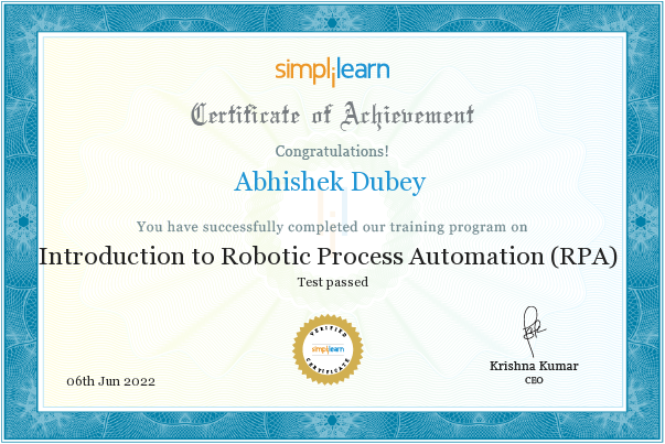 SimplilearnJan 2022 - View certificate