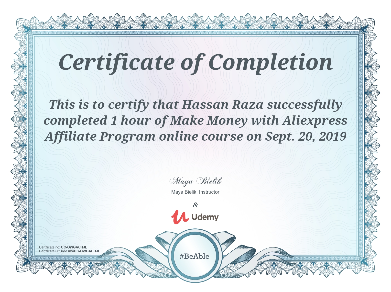 UdemySept 2019 - View certificate