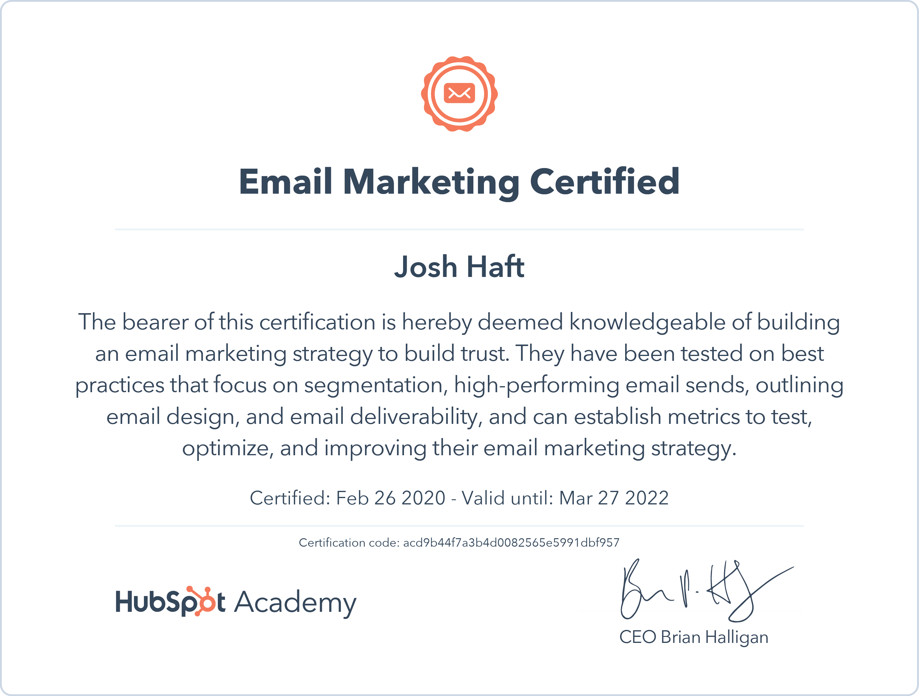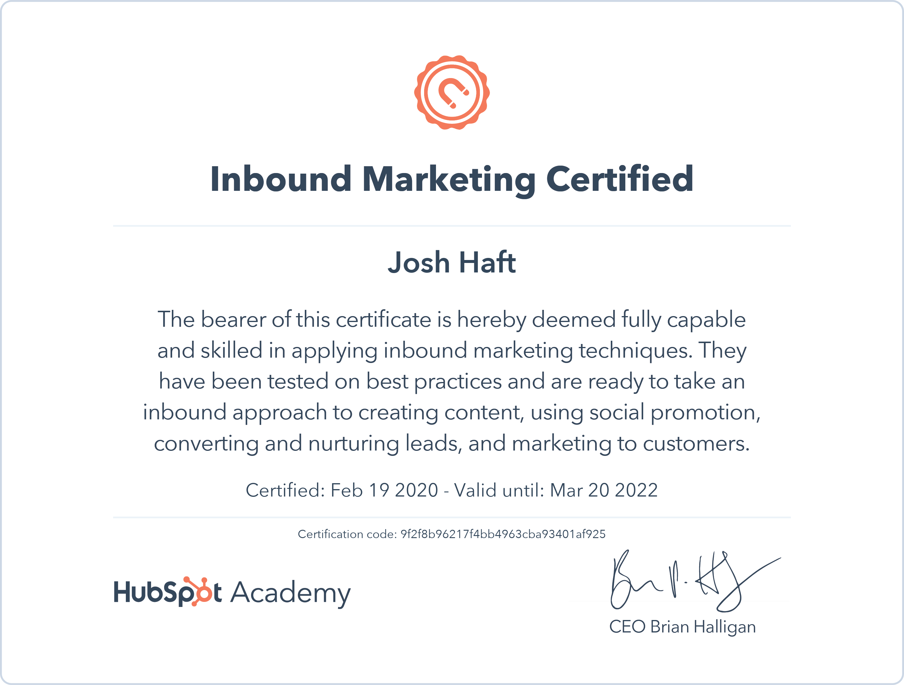 HubSpot AcademyFeb 2020 - View certificate