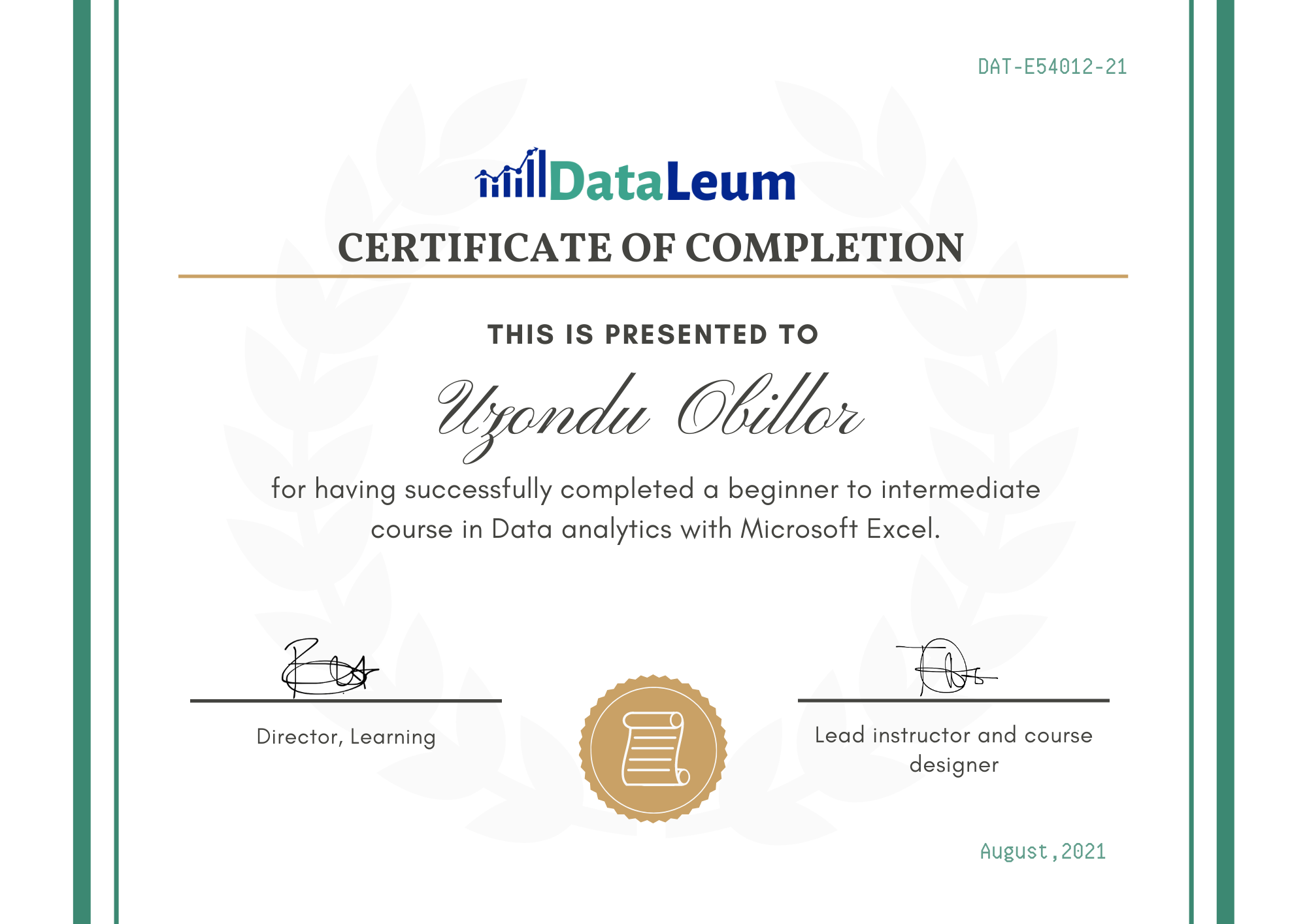 DataleumAug 2021 - View certificate