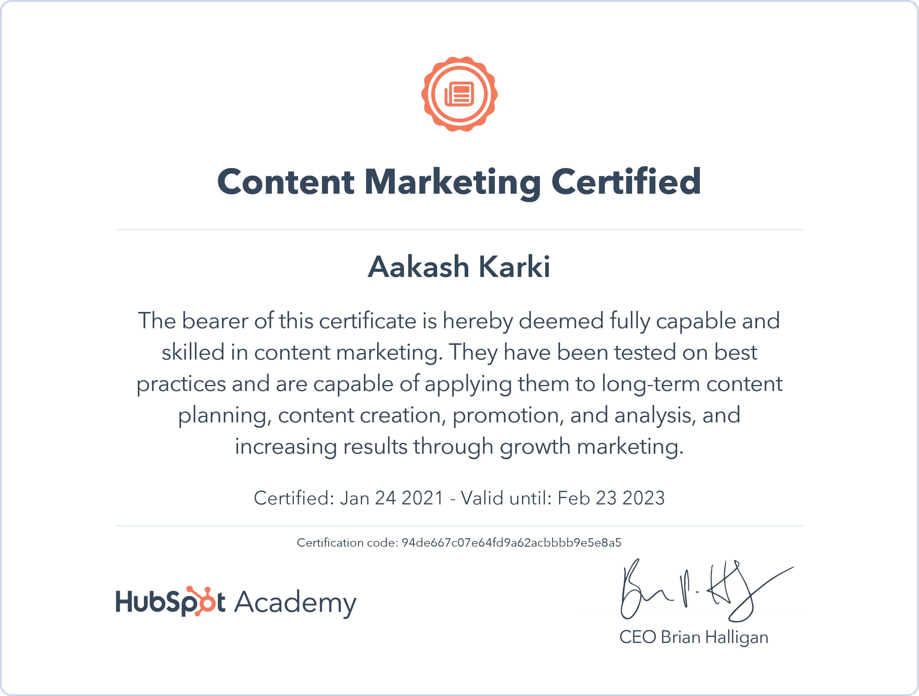 HubSpotJan 2021 - View certificate