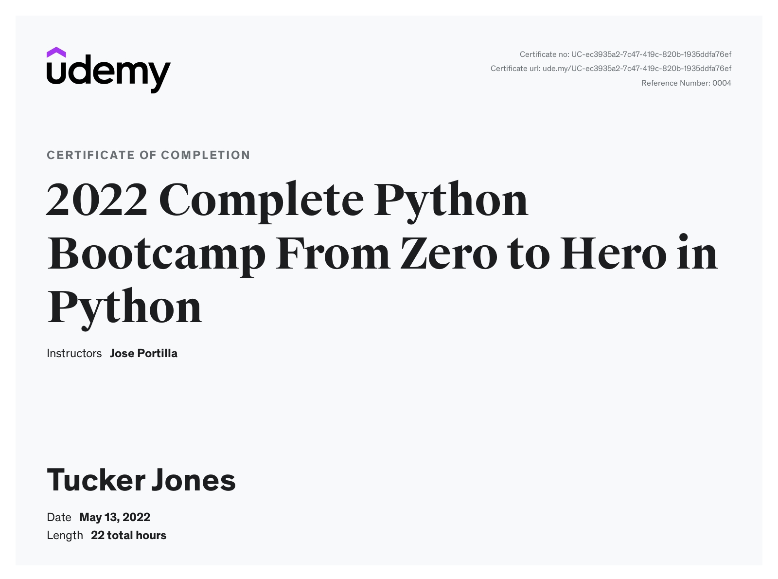 UdemyMay 2022 - View certificate