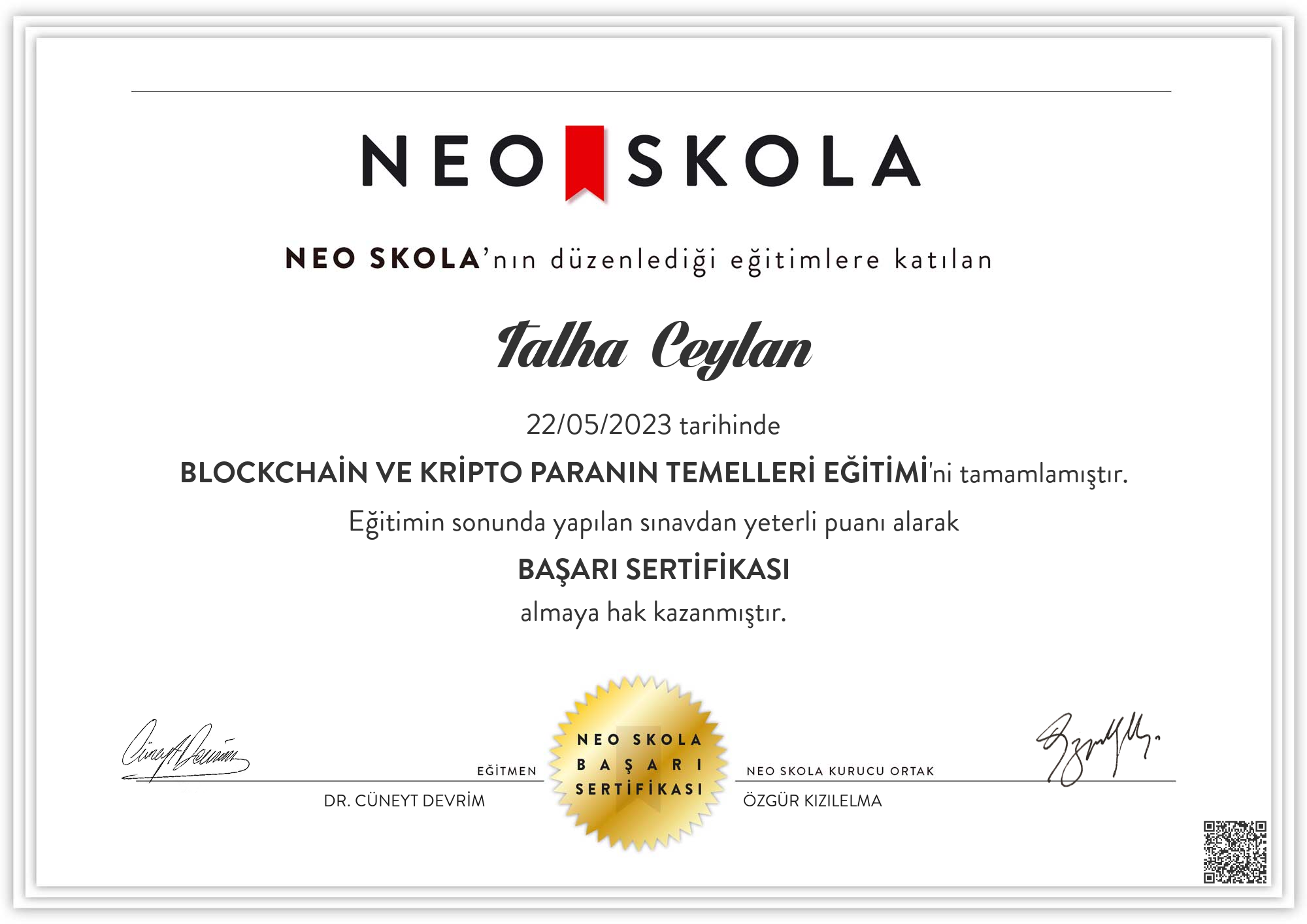 Neo skolaMay 2023 - View certificate