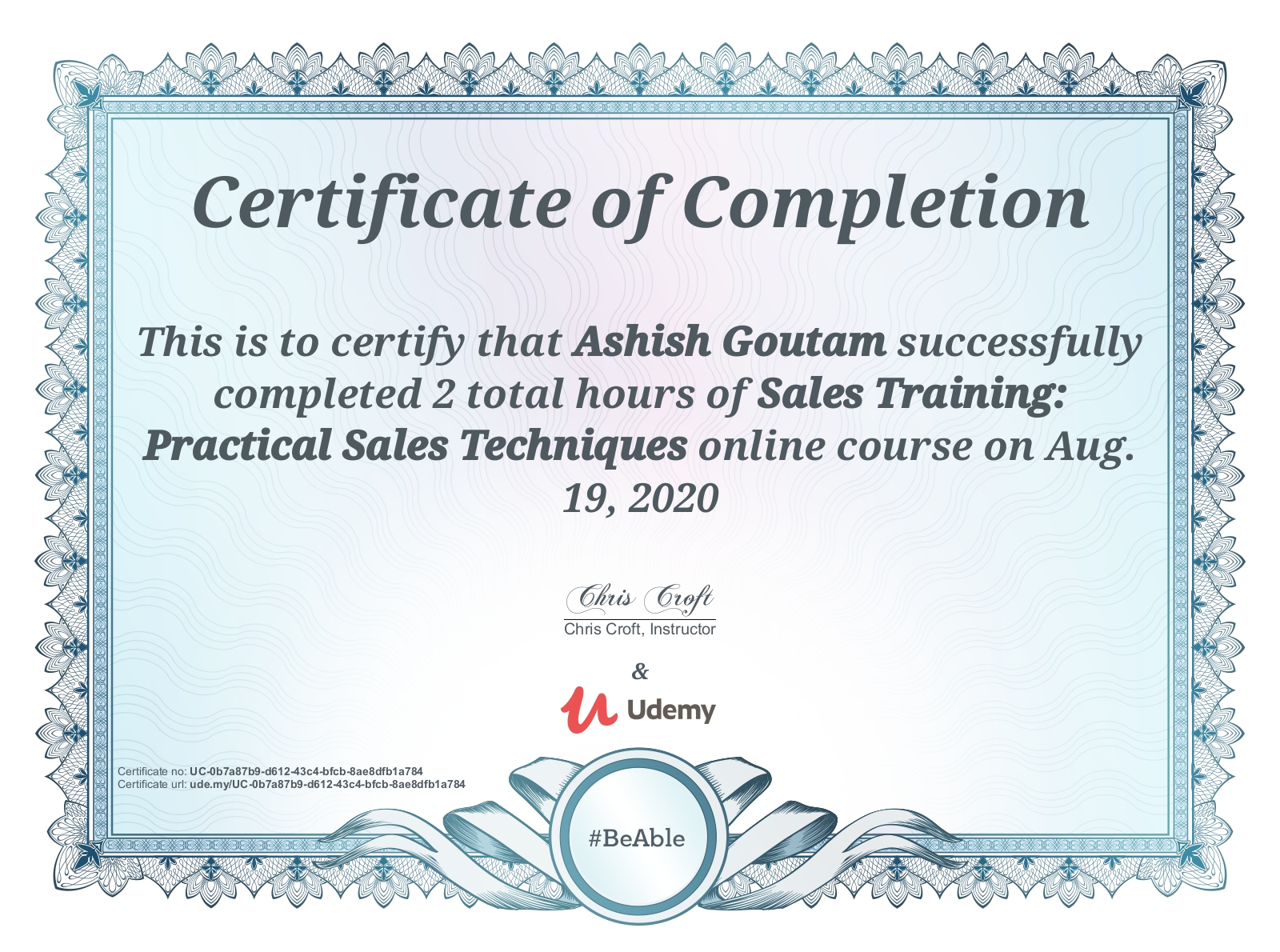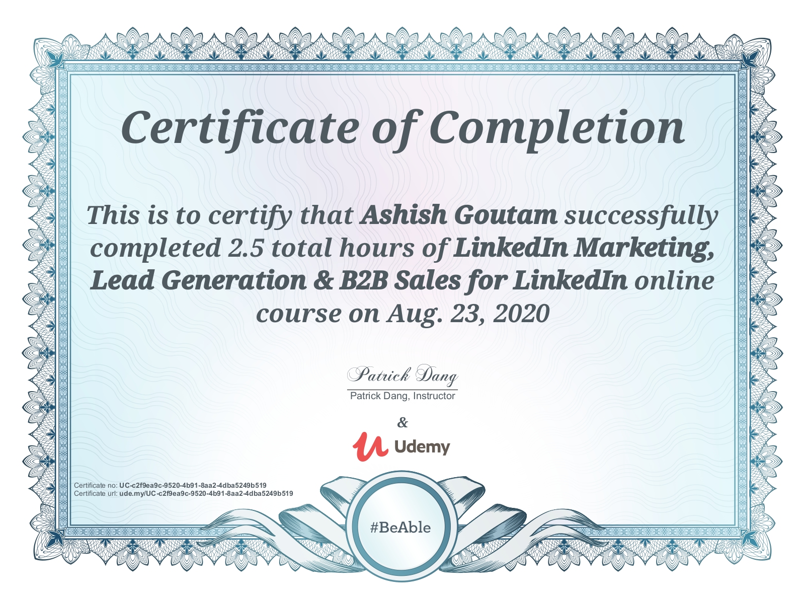 UdemyAug 2020 - View certificate