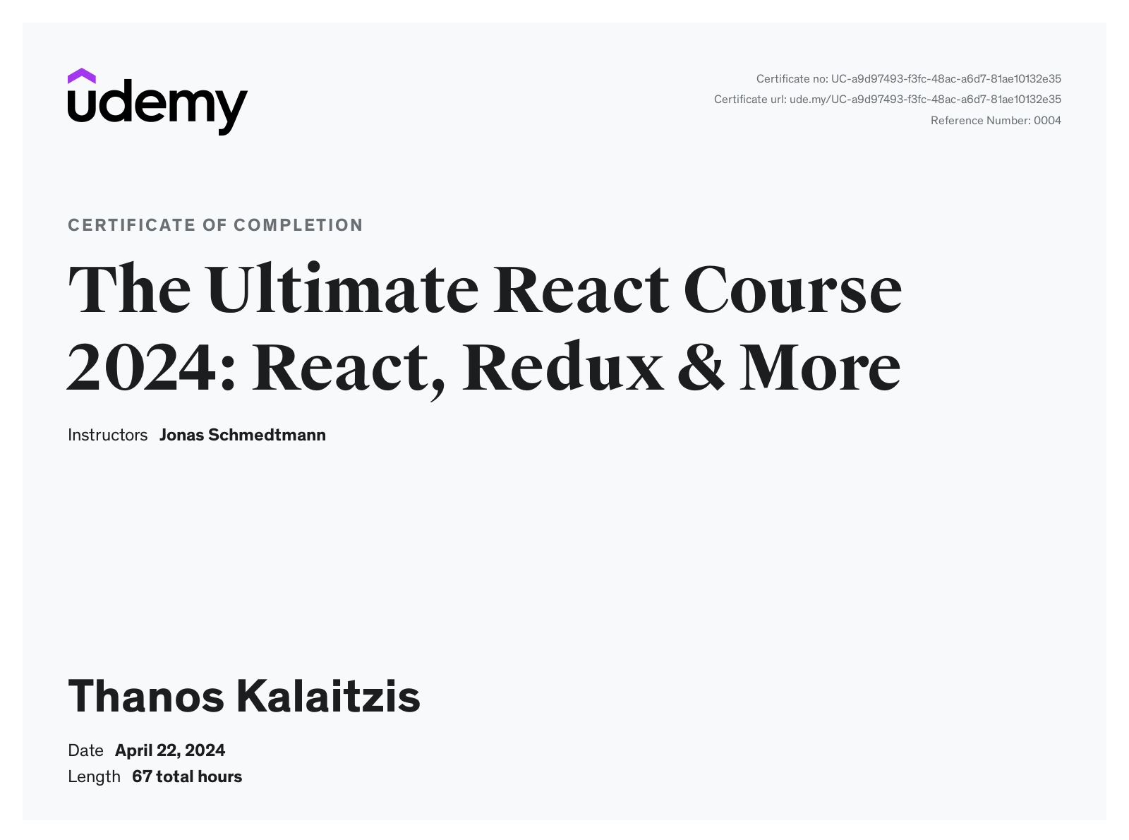 Udemy online coursesApr 2024 - View certificate