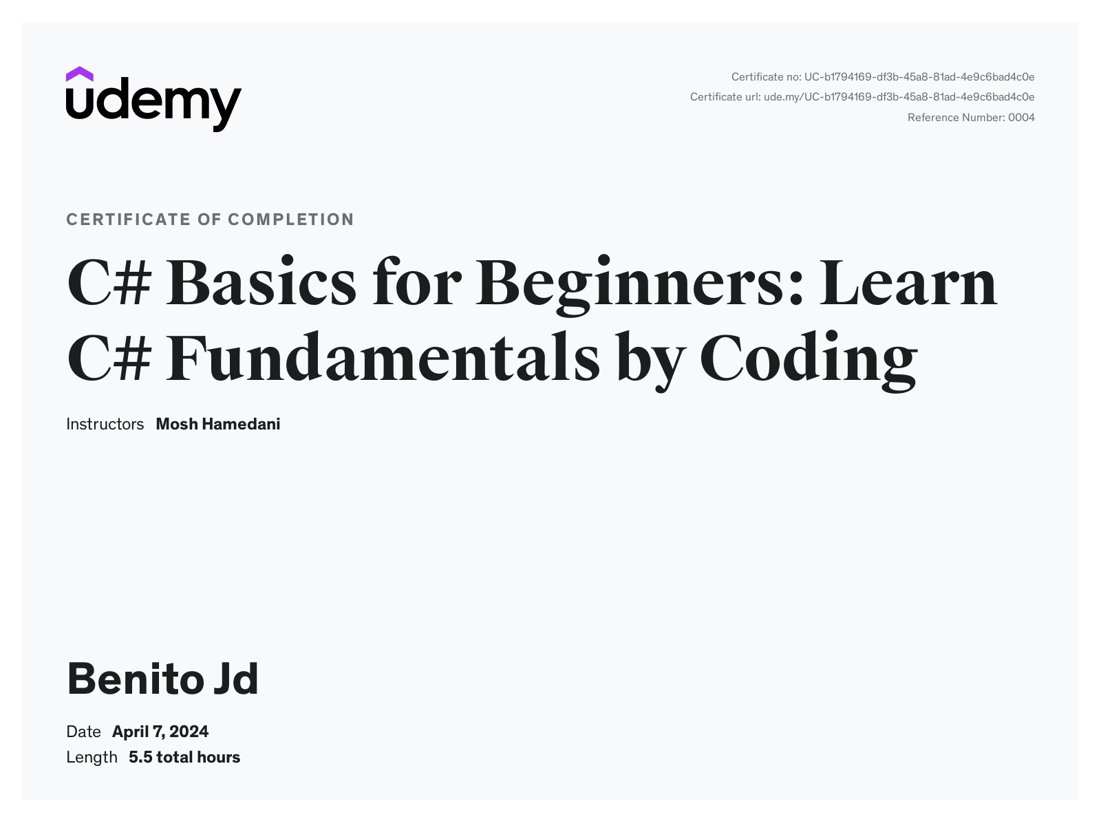 Udemy - View certificate