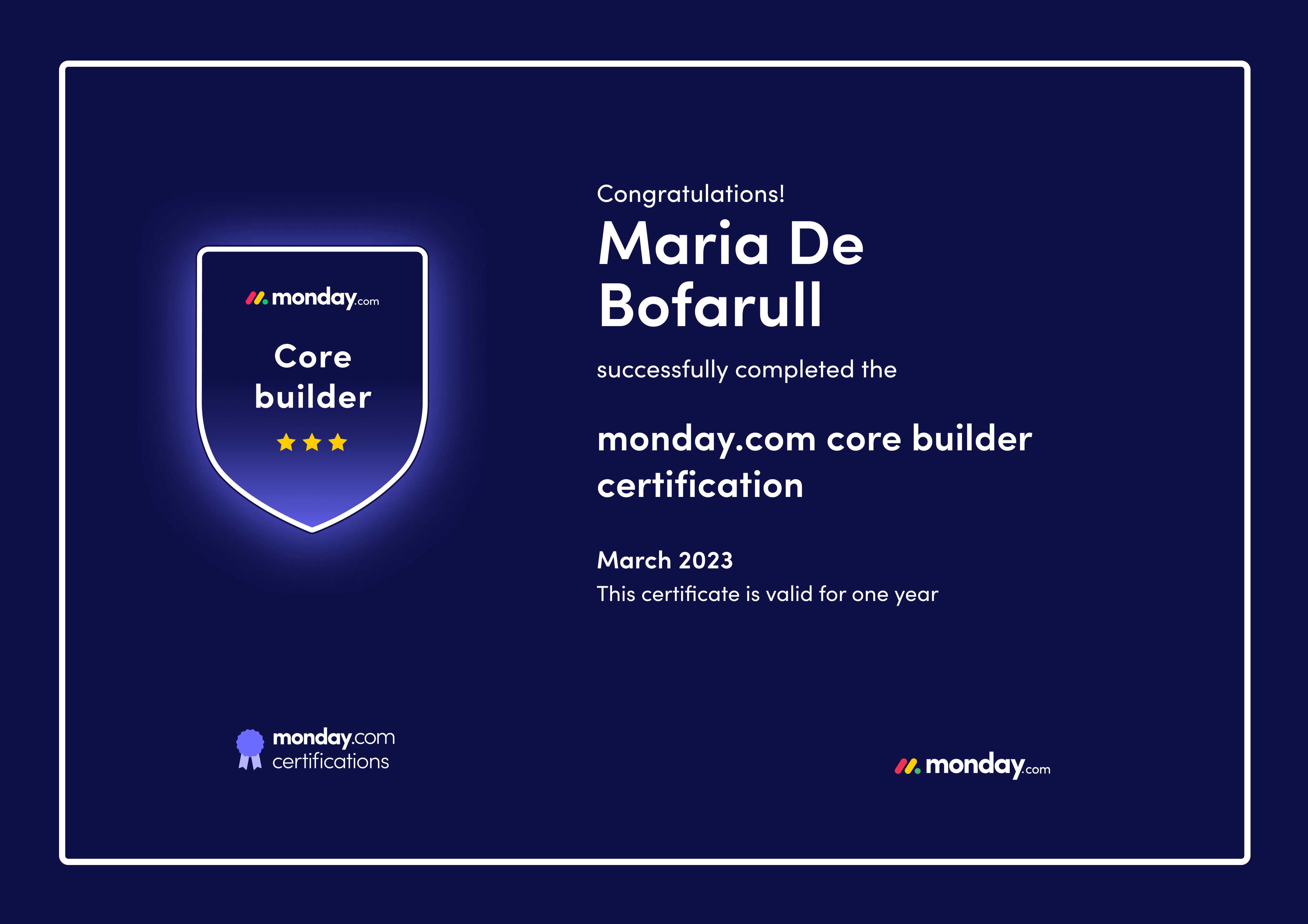 Monday.com core builder certification