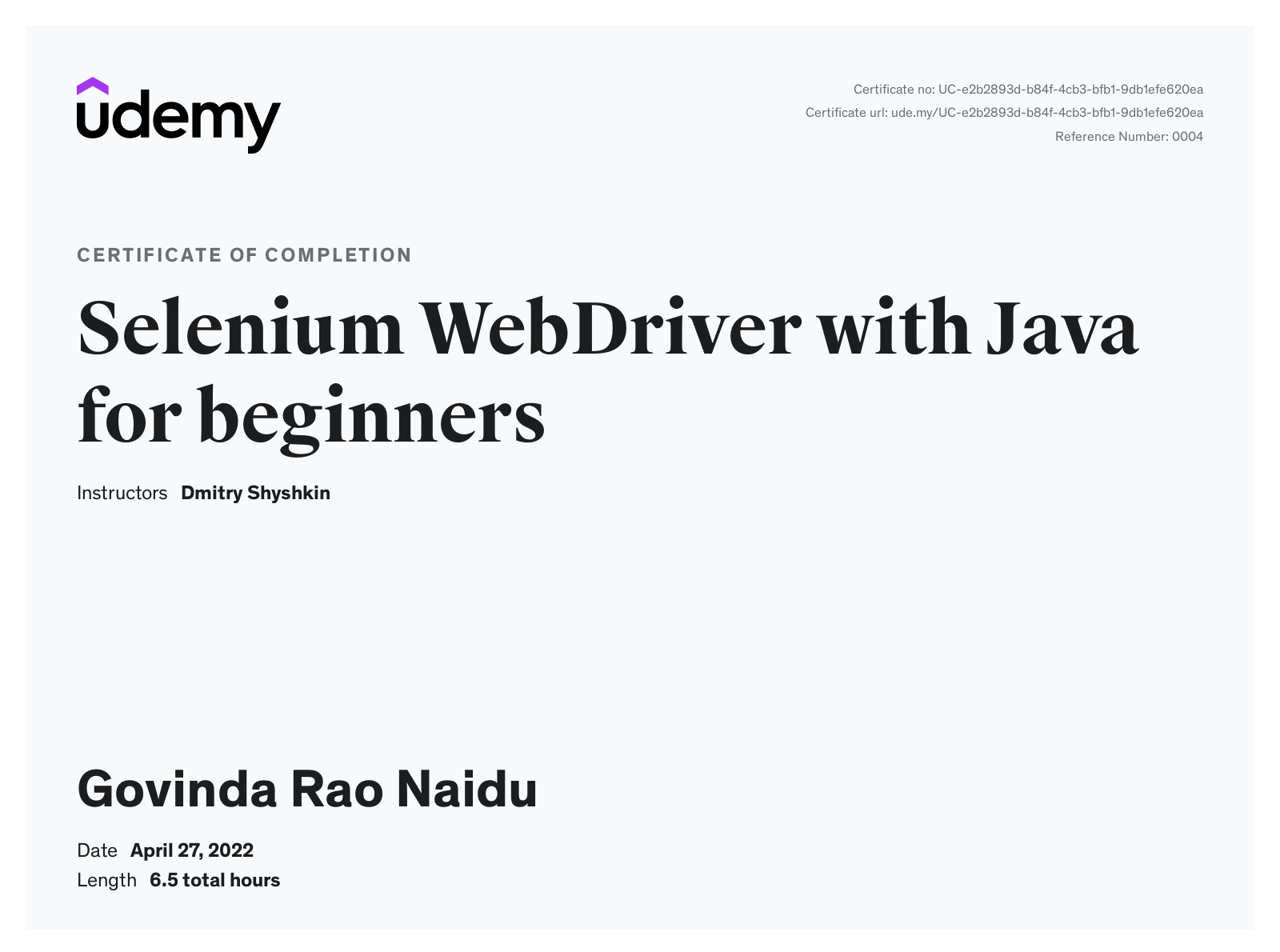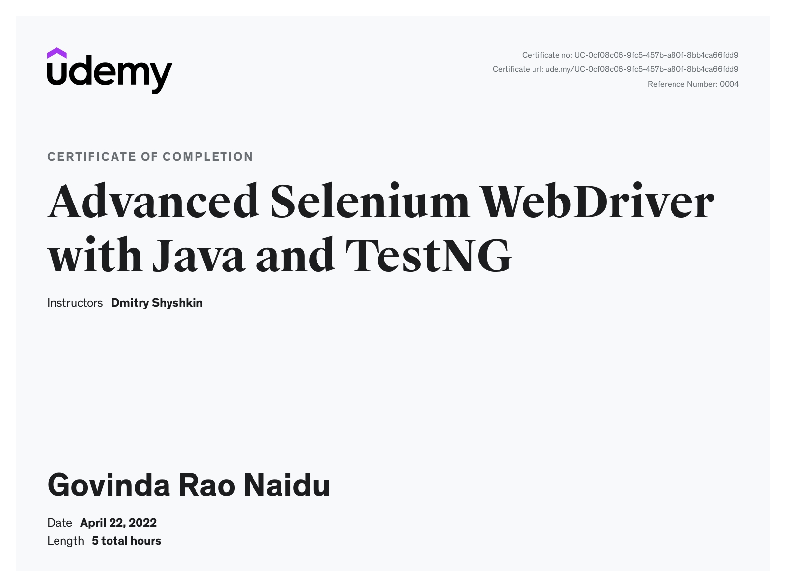 UdemyApr 2022 - View certificate