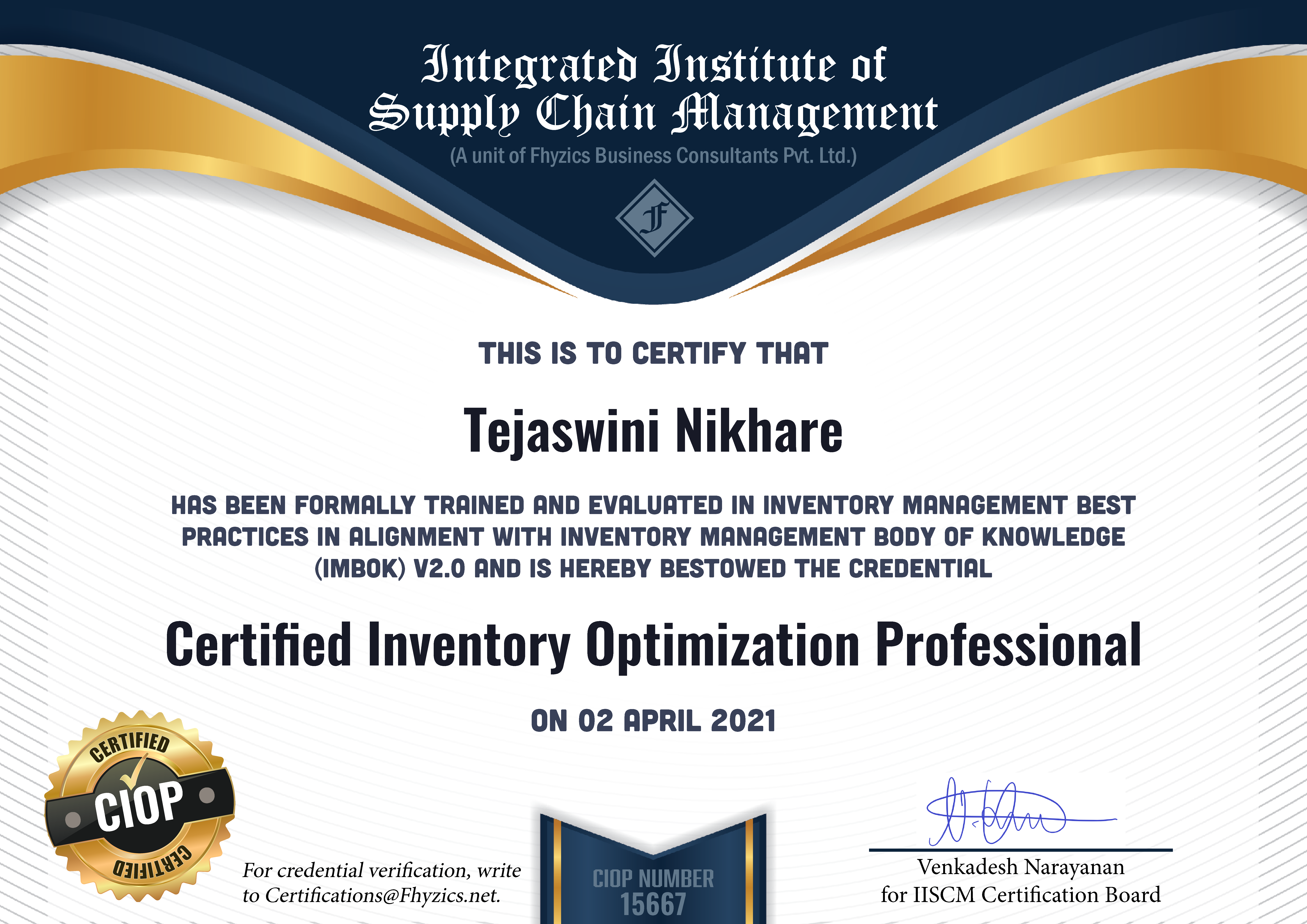 Certified Inventory Optimization Professional