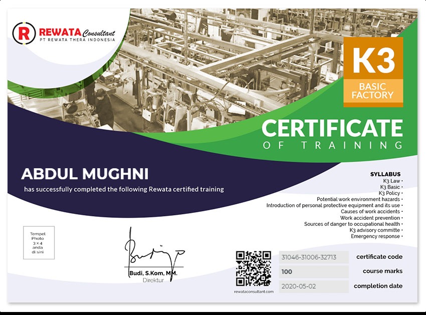 Kursus Keselamatan dan Kesehatan Kerja (K3) Basic Factory - Bersertifikat