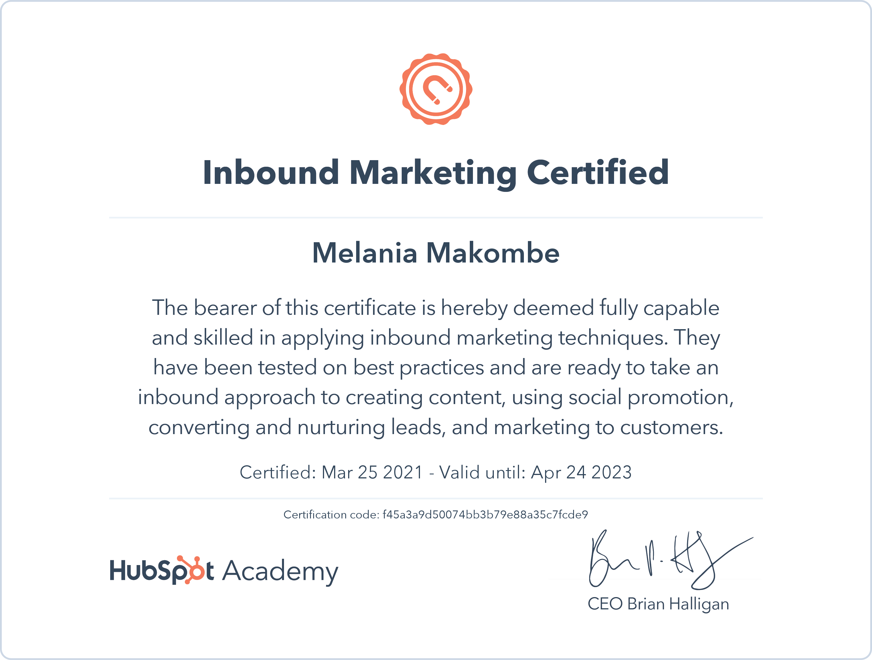 HubSpotMar 2021 - View certificate