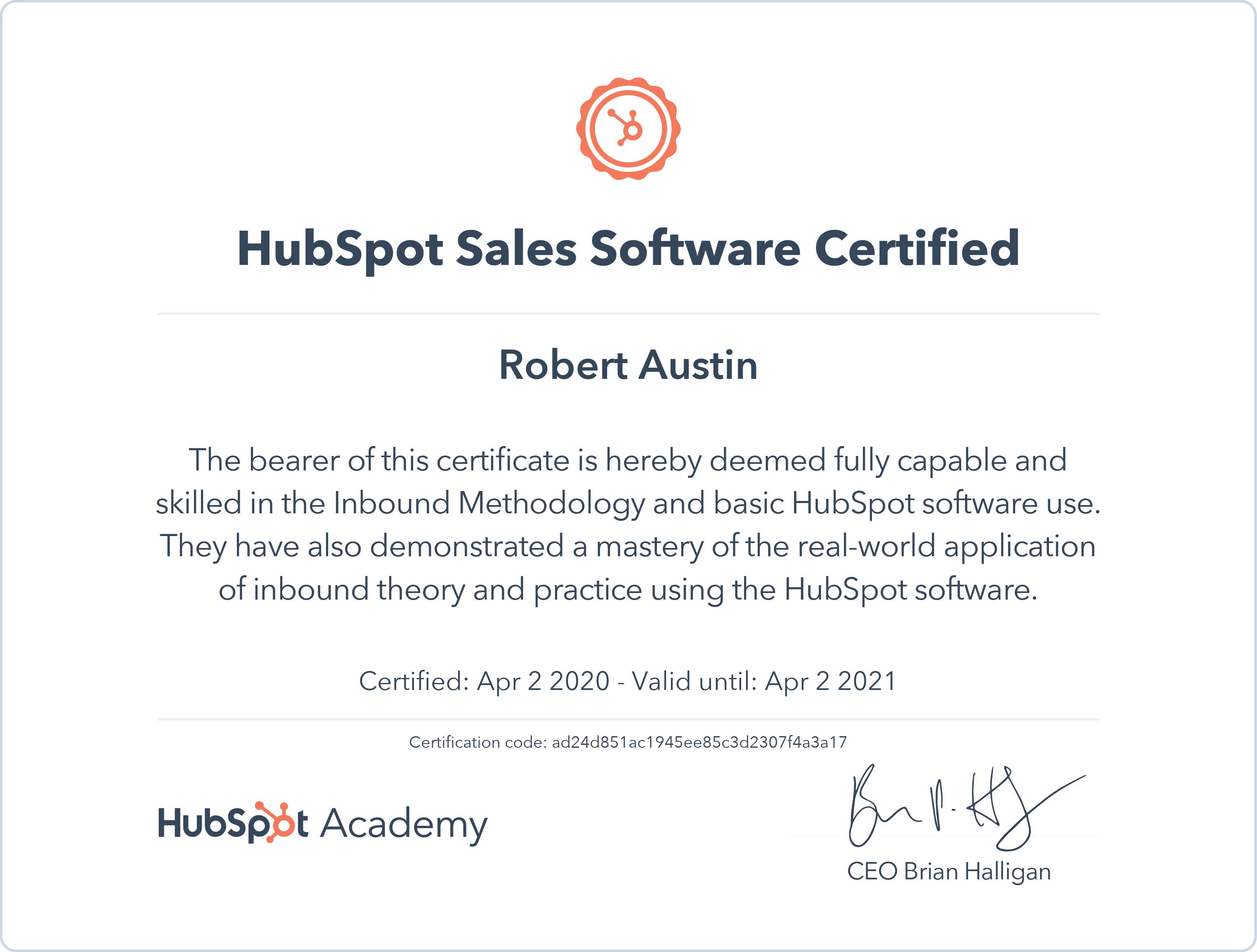 HubSpotMar 2020 - View certificate
