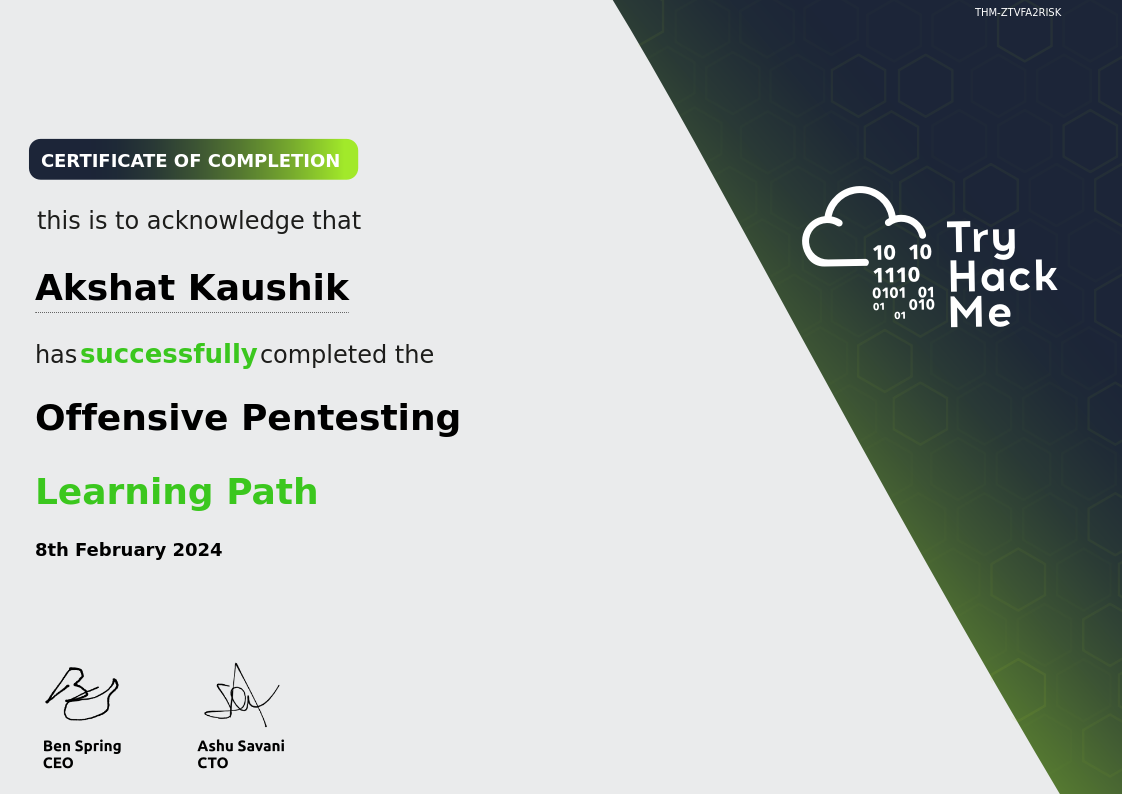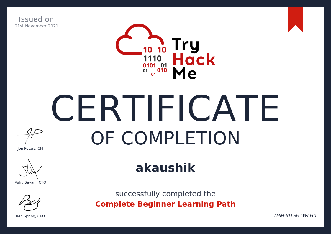 TryHackMeNov 2021 - View certificate