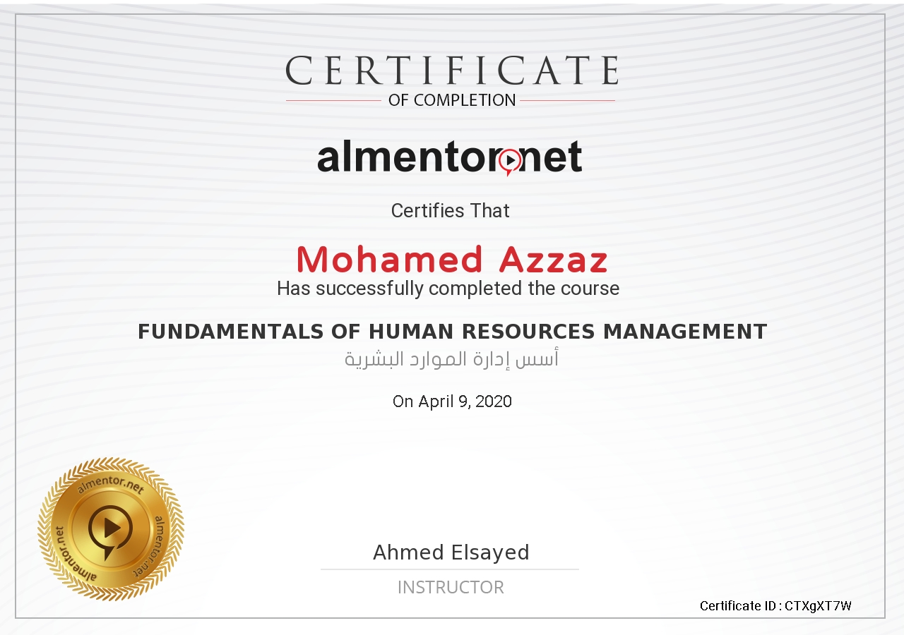 - Awarded to Mohamed AzzazSenior HR TREE (Student Activity) Jul 2019 I took Best Senior HR of the year