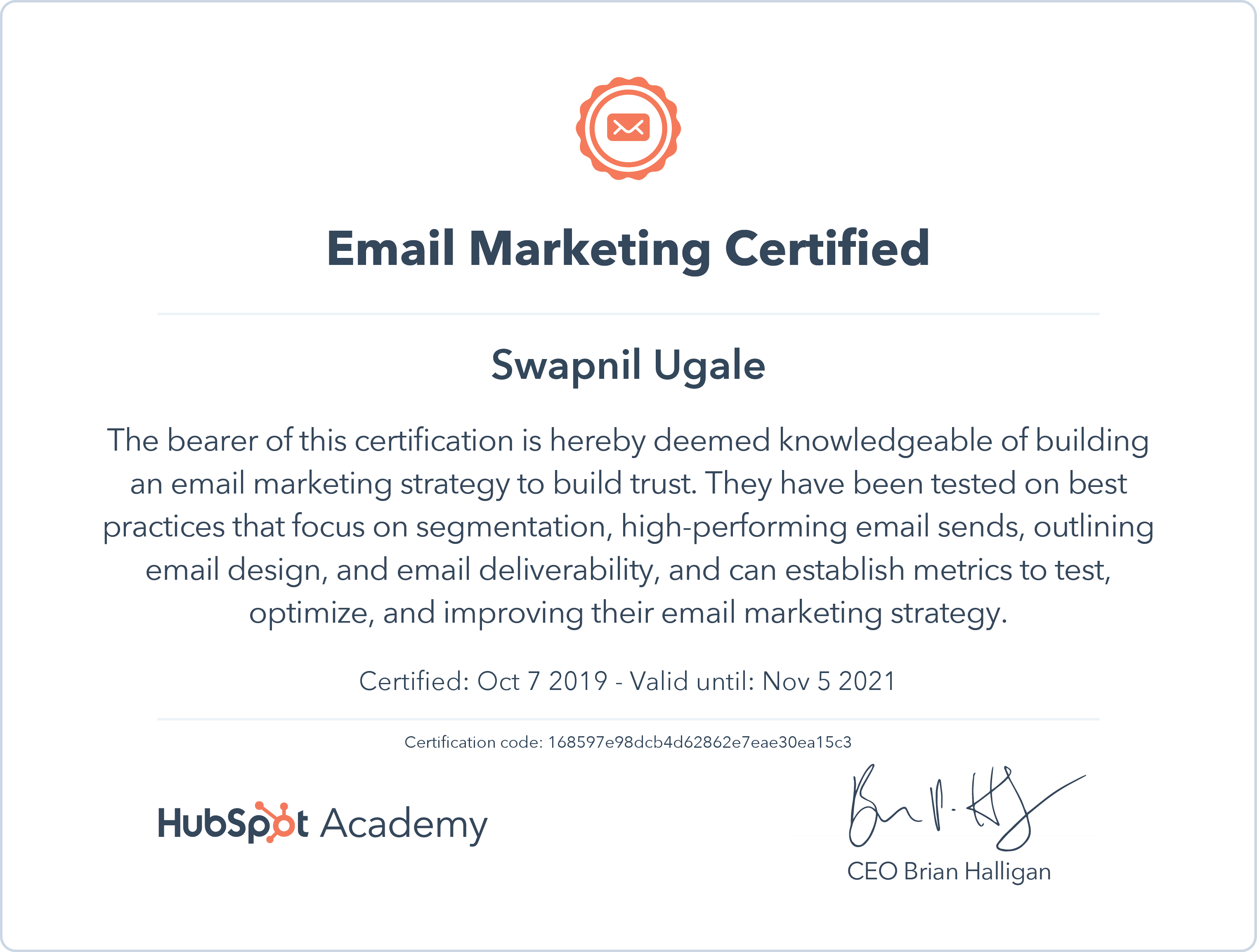 HubSpotSept 2019 - View certificate