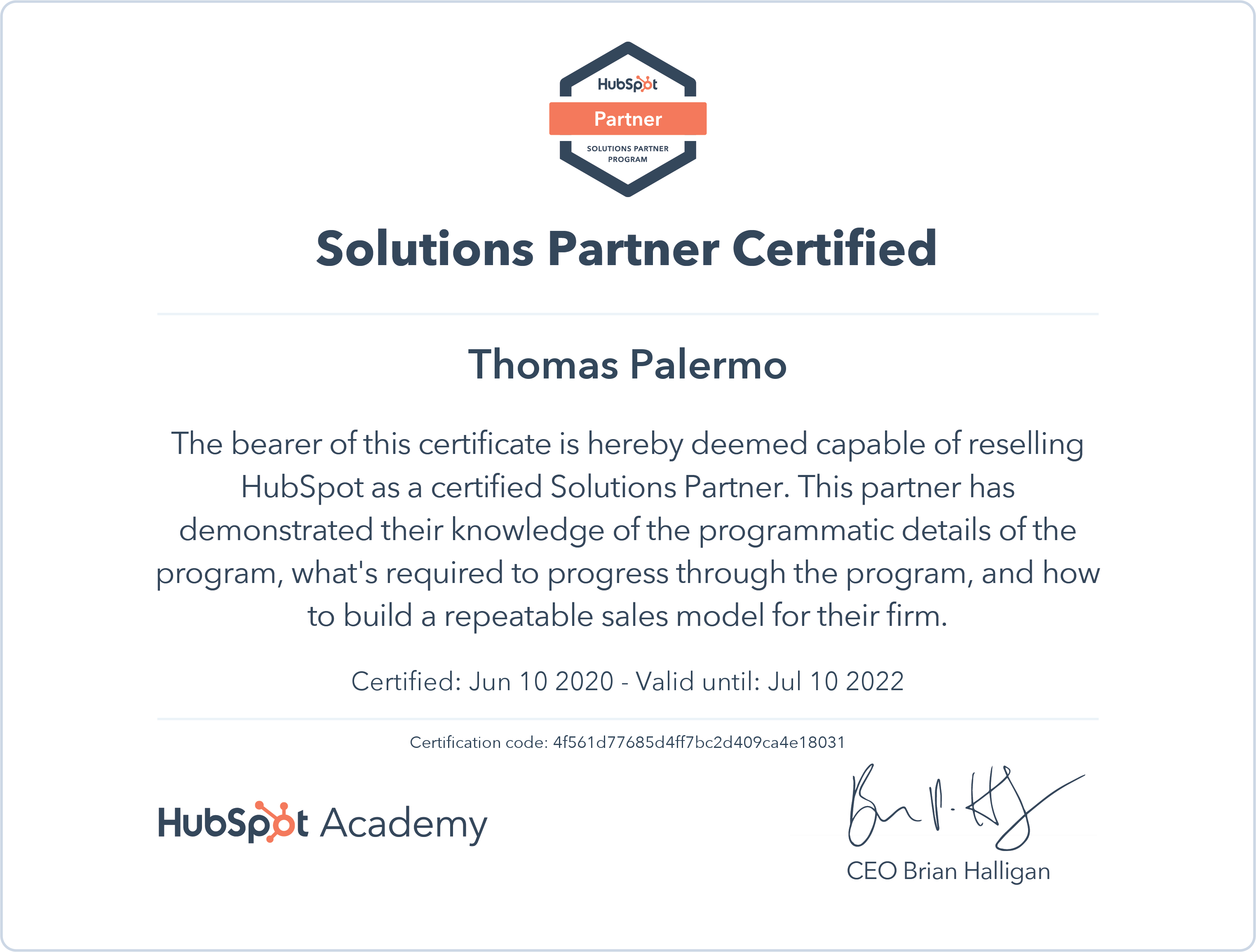 HubSpot Sales Software Certified (renewed in June 2020)