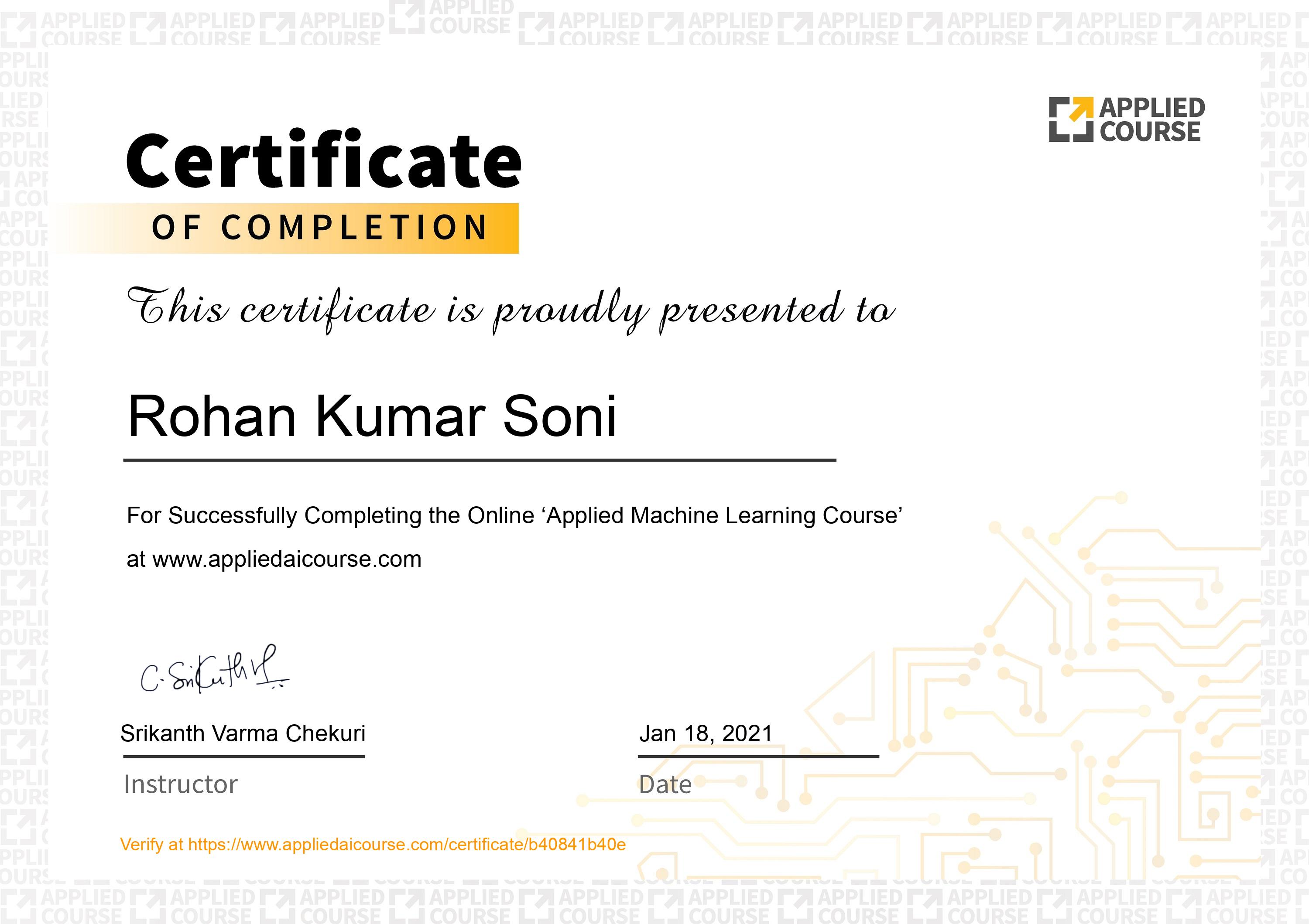 Applied AI CourseJan 2021 - View certificate